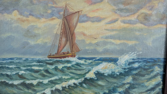 A.P - Merimaisema Aiheinen Signeerattu Öljyvärimaalaus (1942)