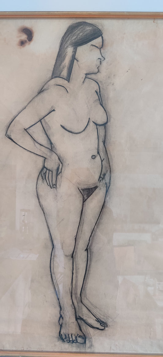 Erkki Hienonen - Signeerattu Hiilipiirros (ISO, 1958)