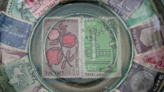 Israelilainen Postimerkein Koristeltu Messinki / Lasi Tuhka-astia (1960-luku)