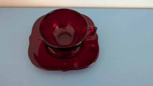 Paden City - Crow's Foot Ruby Kahvikuppi ja Tassi (1930-luku)