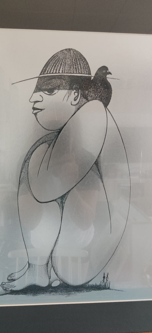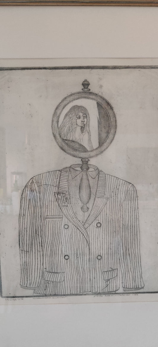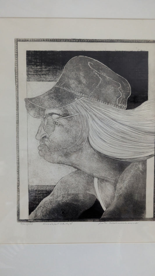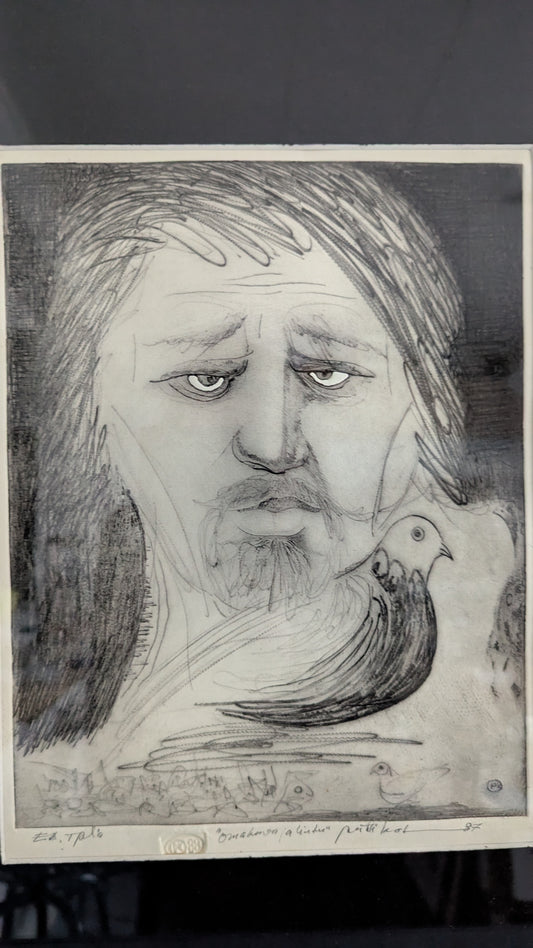 Pertti Kolehmainen - Omakuva ja Lintu (Signeerattu Grafiikka 1987)