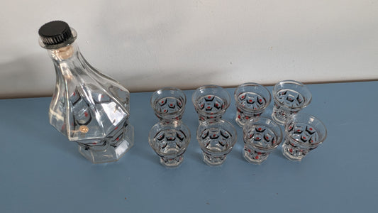 Riihimäen Lasi - Maalauskoristeltu Karahvi ja Lasit 8kpl (1930-luku)