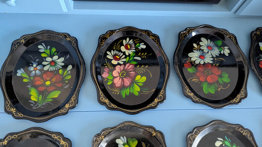 Zhostovo - Kukkakoristein Koristeltu Muovilautanen (8kpl, Neuvostoliitto)