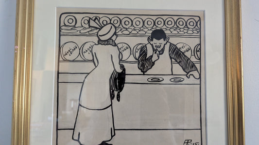 Alexander Paischeff - Alkuperäispiirros Pilalehti Ampiaiseen (Viipuri, 1915)