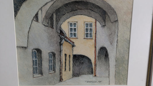 Yrjö (Ybi) Hannula - Porttikäytävä (Signeerattu Pastellimaalaus, 1997)