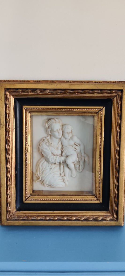 BiGGS and Sons - Äiti ja Lapsi (Kehystetty Reliefi Alabasterista, Paino 3.5kg)