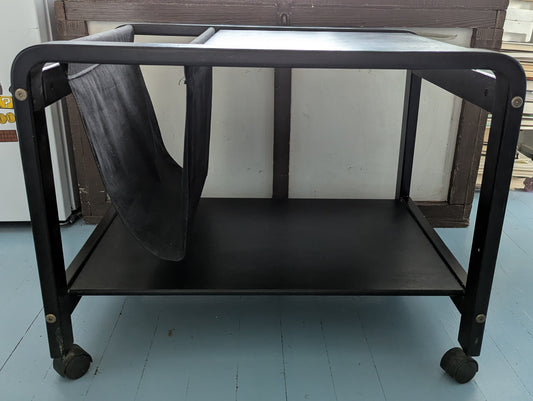 Musta Puinen Tarjoilukärry Lehtitelineellä