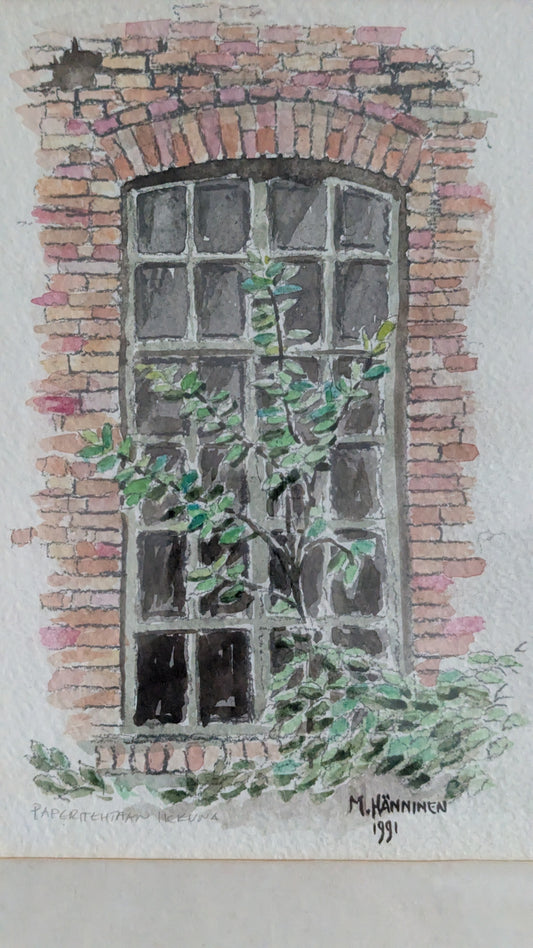 M. Hänninen - Paperitehtaan Ikkuna (Signeerattu Akvarellimaalaus 1991)