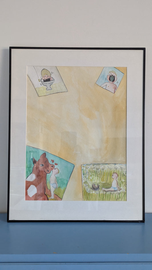 Grafiikkaa, maalauksia ja pieniä alkuperäisteoksia menneiltä vuosikymmeniltä.