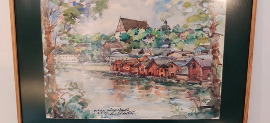 Signeerattu Akvarellimaalaus Porvoon Näsinmäeltä (1972)