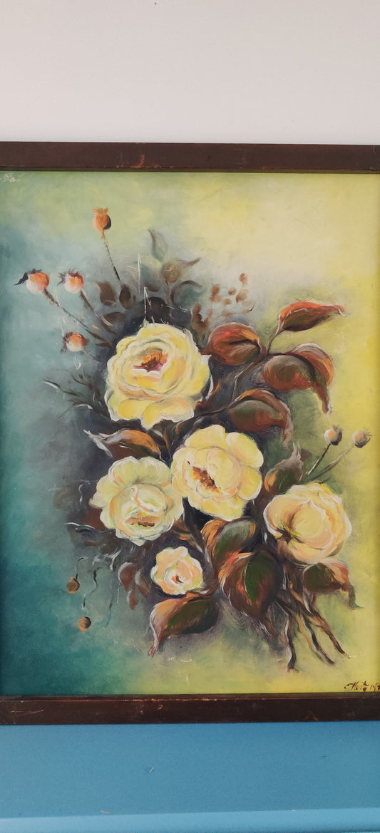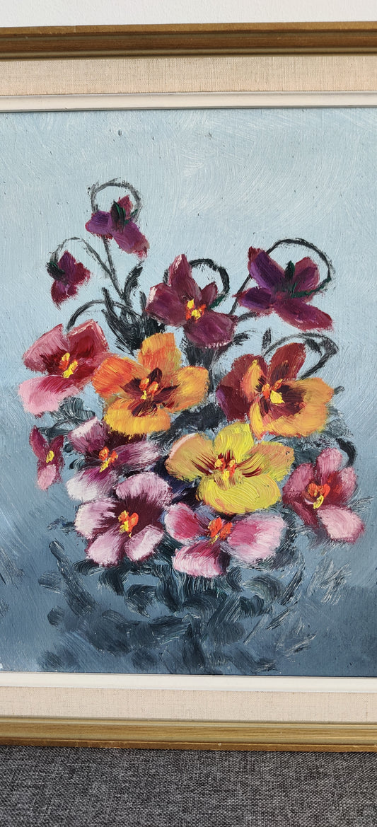 Signeerattu Kukka-aiheinen Öljyvärityö (36.5cm x 32cm)