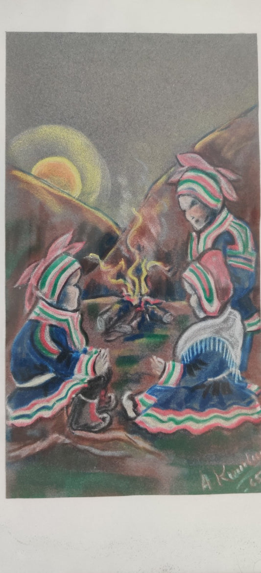 Signeerattu Lappi Aiheinen Pastellimaalaus (1965)