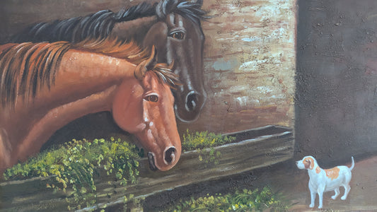 Signeerattu Metsästysaiheinen Öljyvärimaalaus