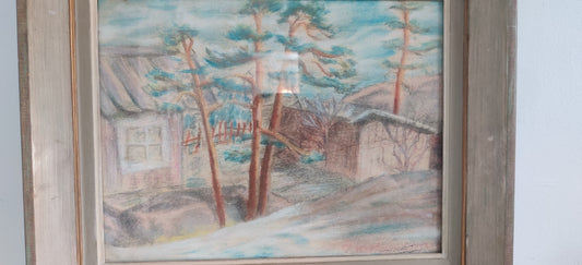 Signeerattu Vanha Pastellimaalaus (Kork 42cm, Lev 51cm)