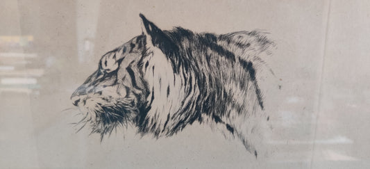 Signeerattu Vanha Tiikeri Aiheinen Etsaus
