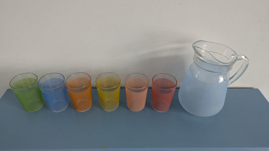 Skruf - Palett Mehukannu ja 6kpl Juomalasit (1970-luku, Bengt Edenfalk)