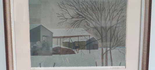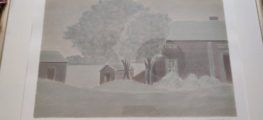 Veikko Vionoja - Talvinen Piha (Signeerattu Litografia 11/90, 1981)