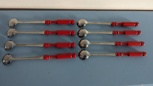 Vintage Kuumajuomalusikat / Glögilusikat (8kpl, Ruostumaton Teräs / Puu)