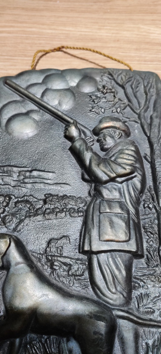 Metsästäjä ja Koira Metallinen Reliefi (970g)