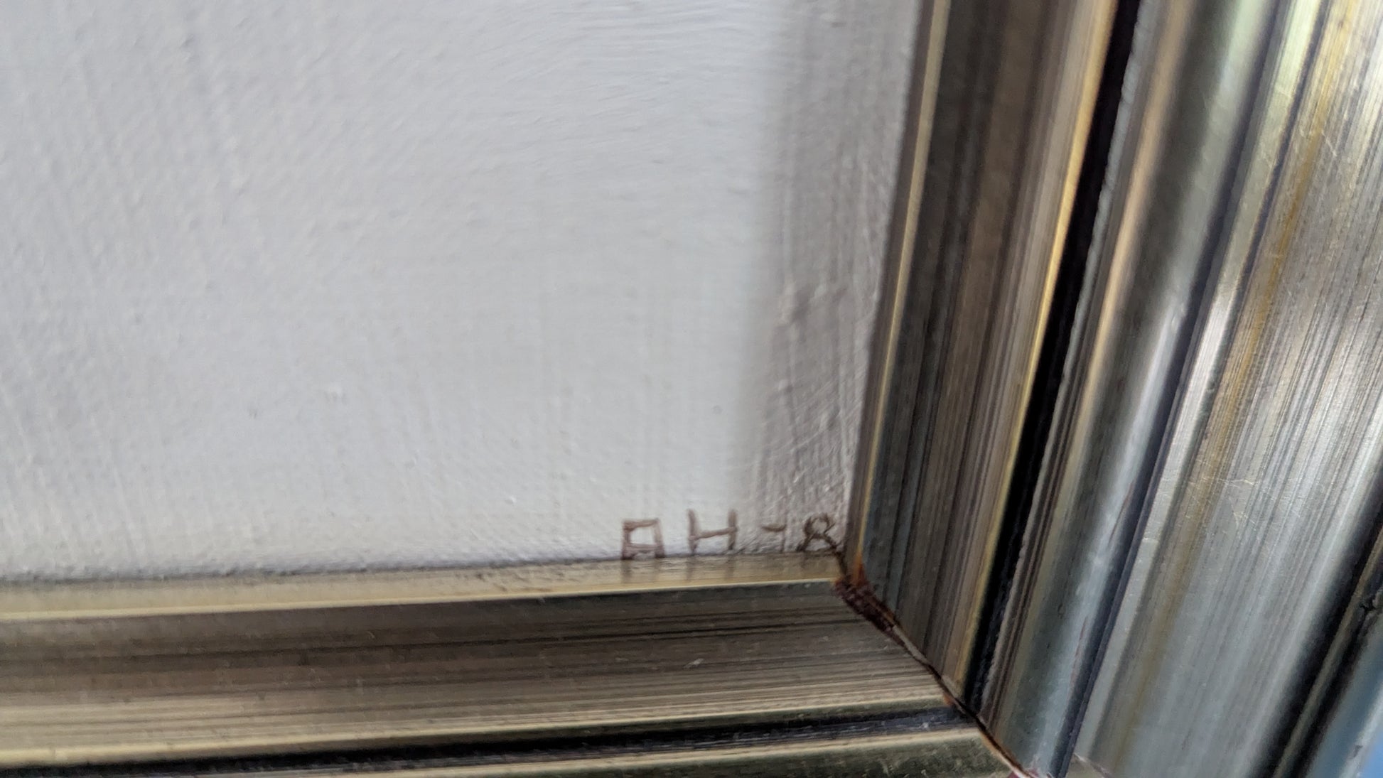 AH kirjaimin signeerattu öljyvärimaalaus vuodelta 1980