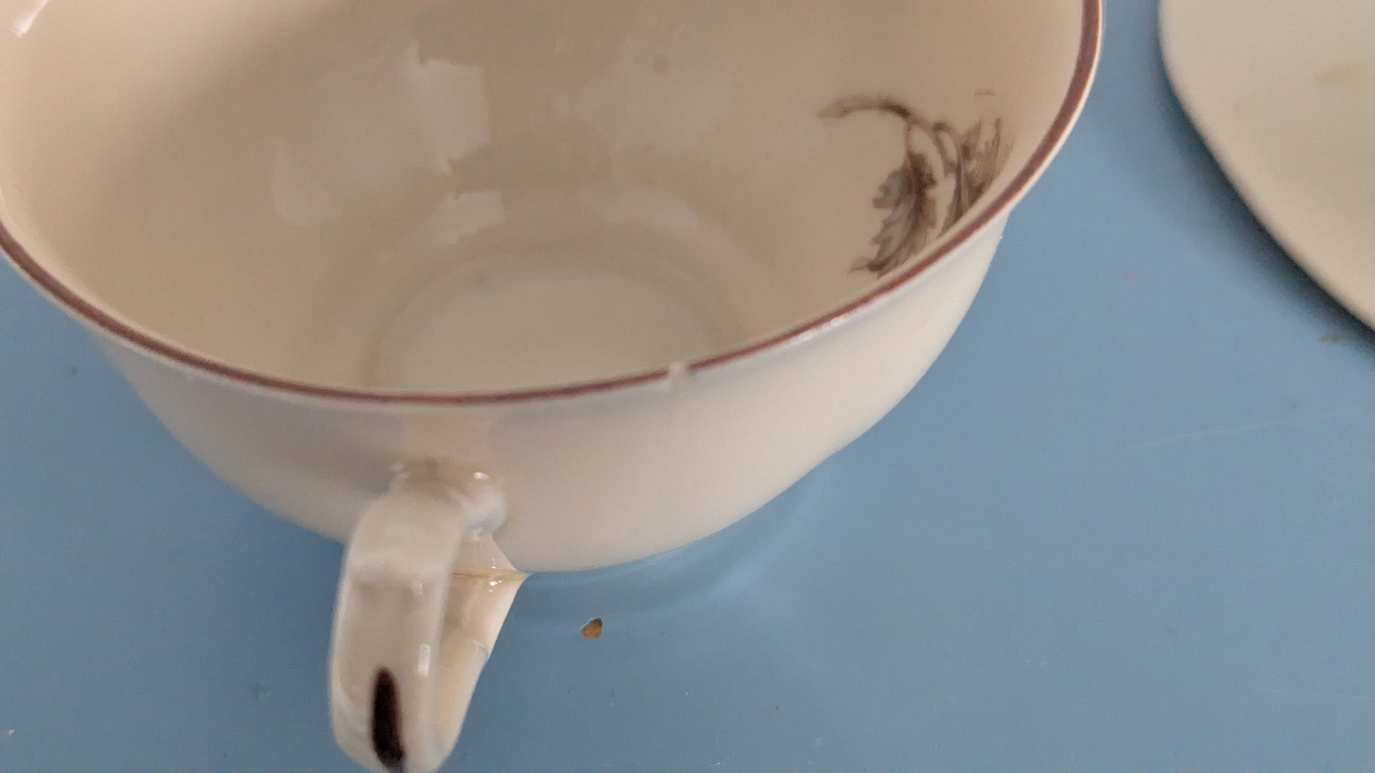 Ei halkeamia. Kultaukset erinomaisessa kunnossa. Käyttökulumaa ei ole tai se on vähäistä. Yhden kupin reunassa viimeisen kuvan mukainen iskemä. Kahdessa muussa nuppineulan terän kokoinen iskemä. Muissa ei iskemiä.