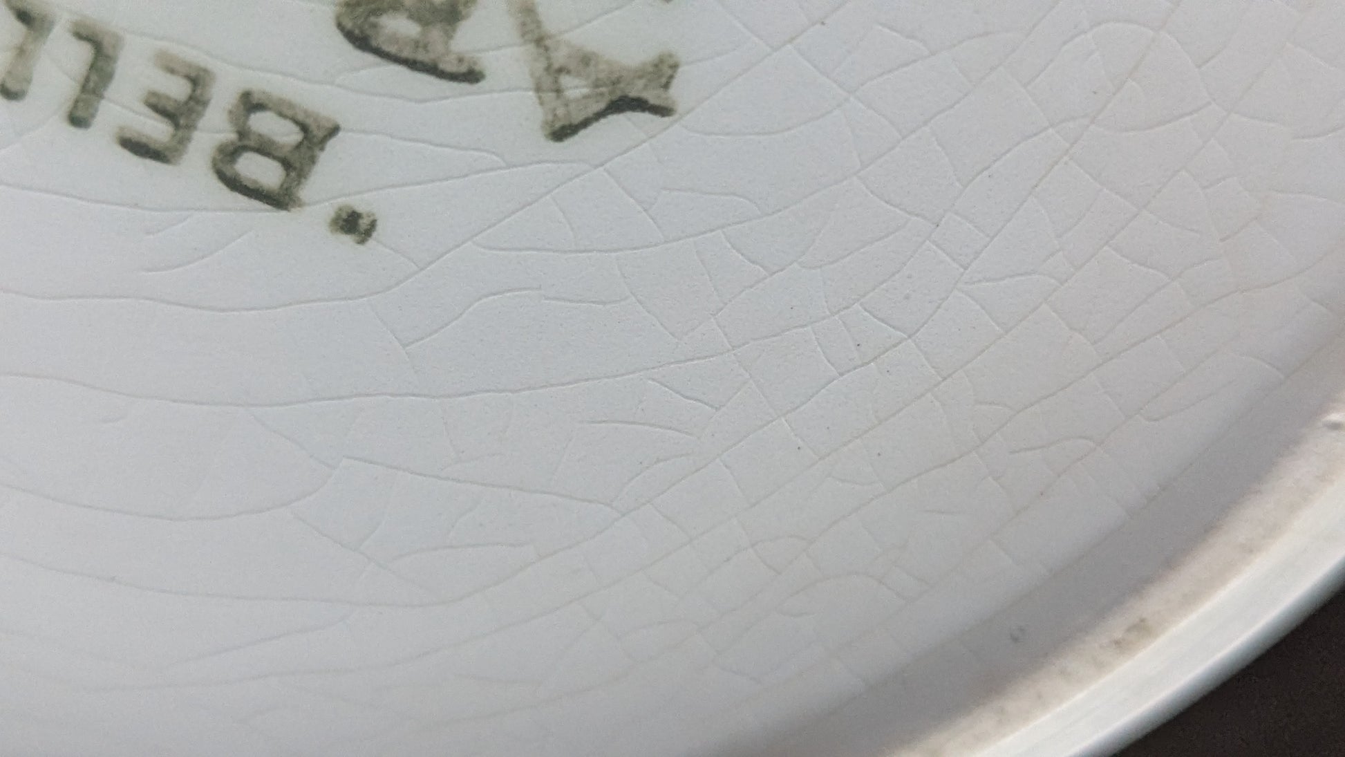 Ei iskemiä tai halkeamia. Koriste erinomaisessa kunnossa. Käyttökulumaa. Viimeisten kuvien mukaista krakeloitumista. Toimisi silti erinomaisesti vielä kukkaruukun aluslautasina.