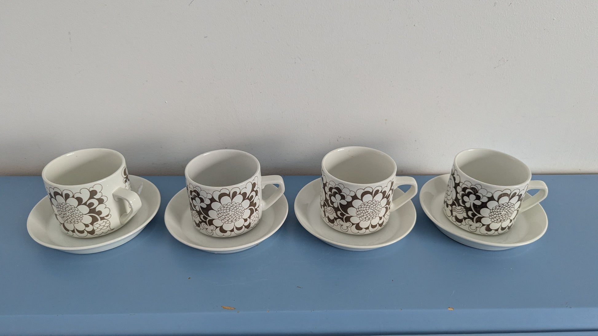 Arabia Gardenia Kahviastiasto Neljälle Hengelle (8-osaa, 1973-1974, Esteri Tomula)