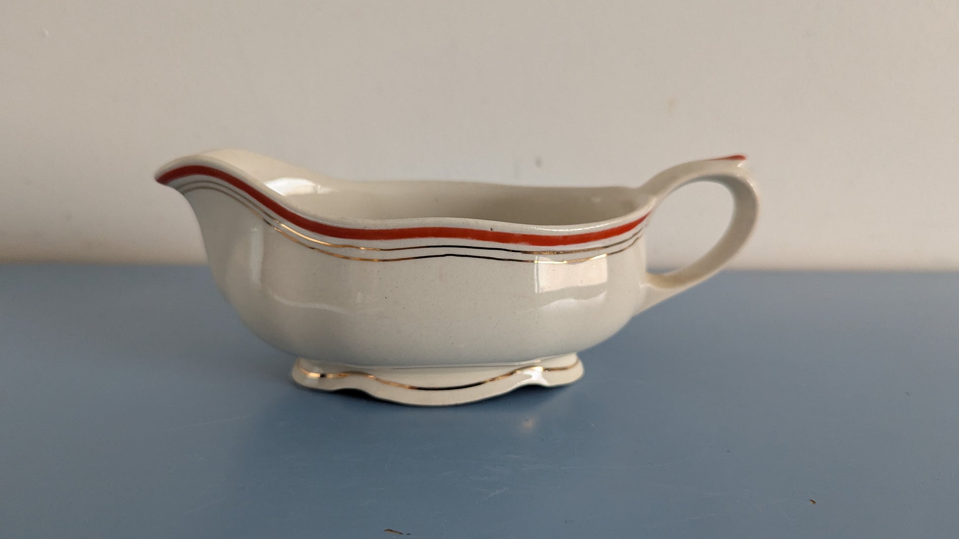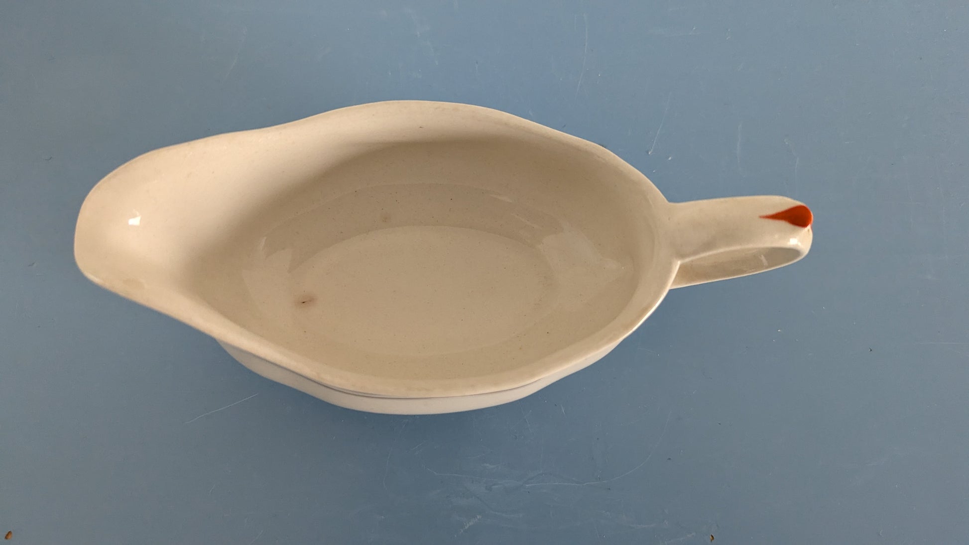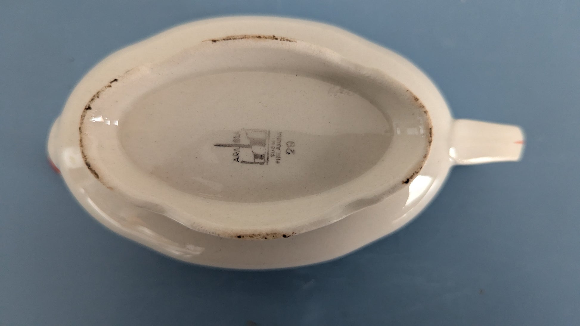 Ei iskemiä, halkeamia tai krakeloitumista. Vähäistä käyttökulumaa. Kermakon pohjalla yksi pieni tumma piste, mikä näkyy viimeisessä kuvassa.
