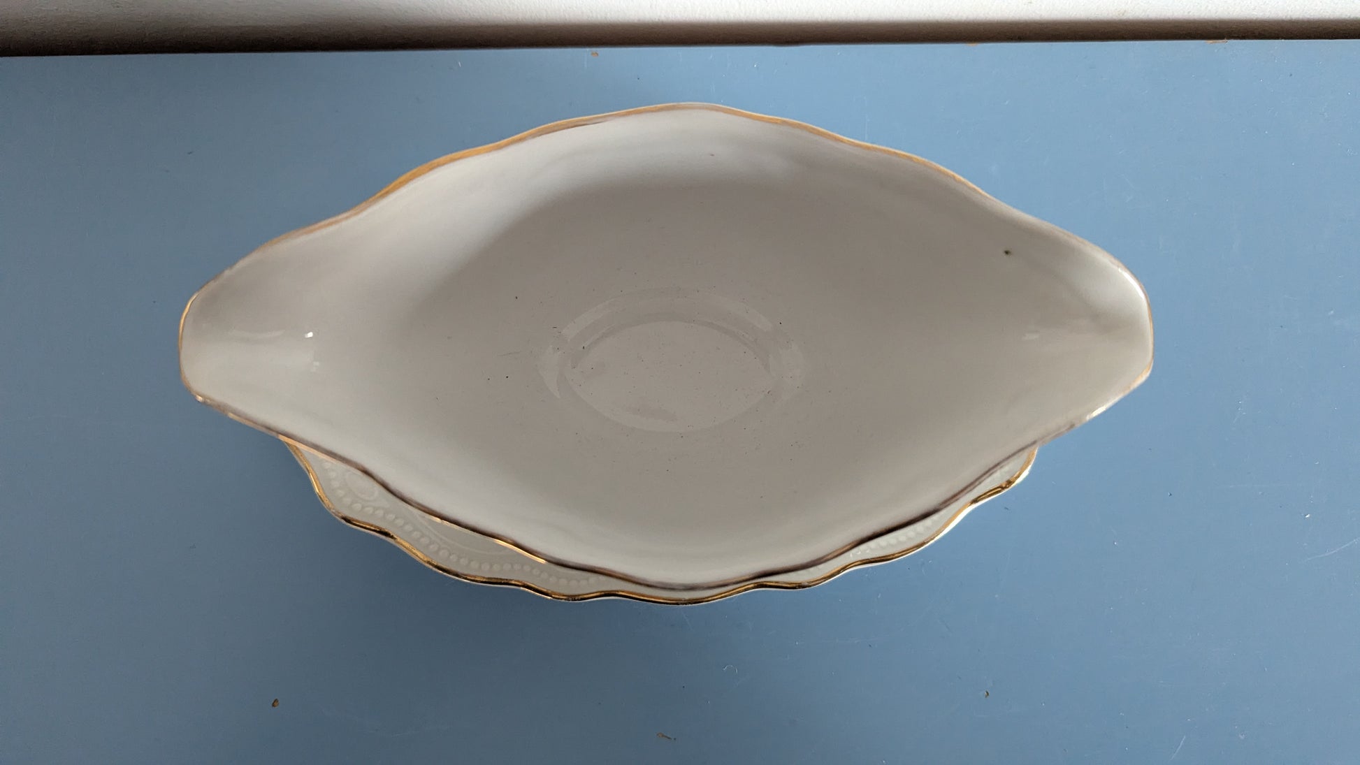 Ei iskemiä tai halkeamia. Yläosan kultauksessa jonkun verran kulumaa.