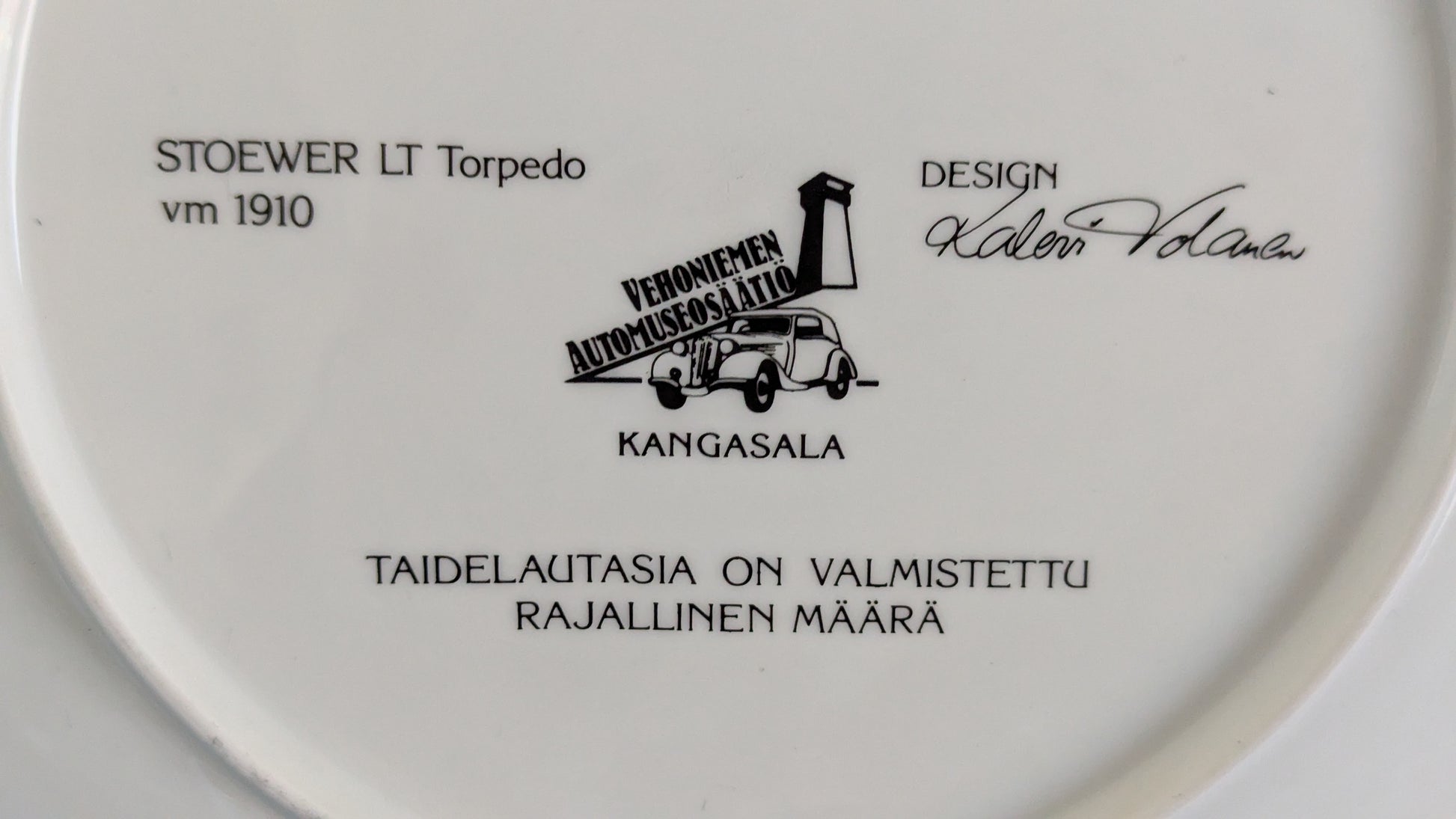 Kangasalan Vehoniemen Automuseolle valmistettu Autohistorian vuosilautanen 1989.
