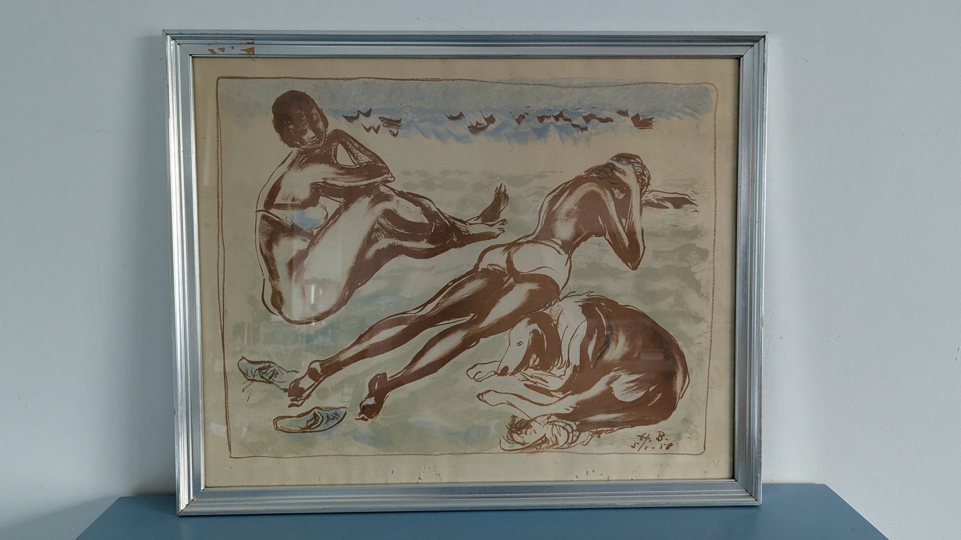 H.B signeerattu sekatekniikka (akvarelli / pastelli) vuodelta 1958.