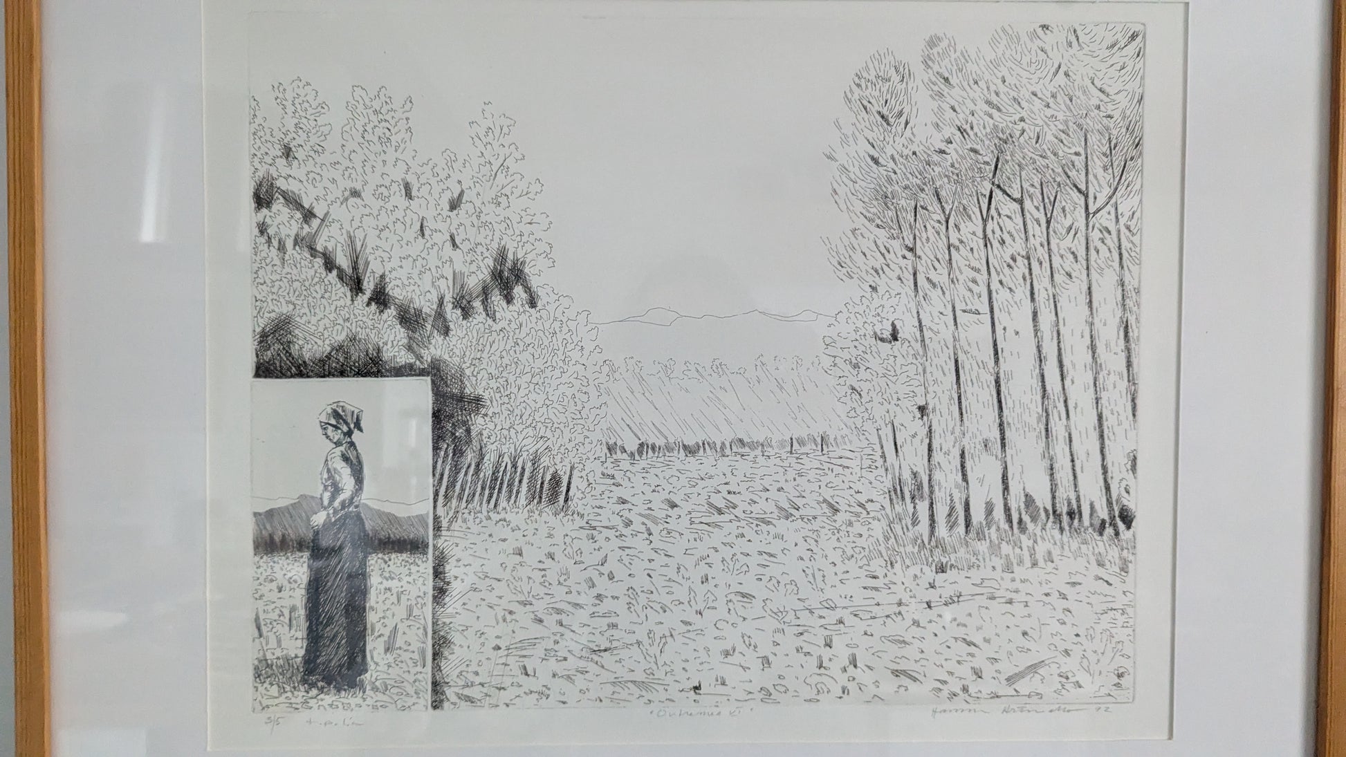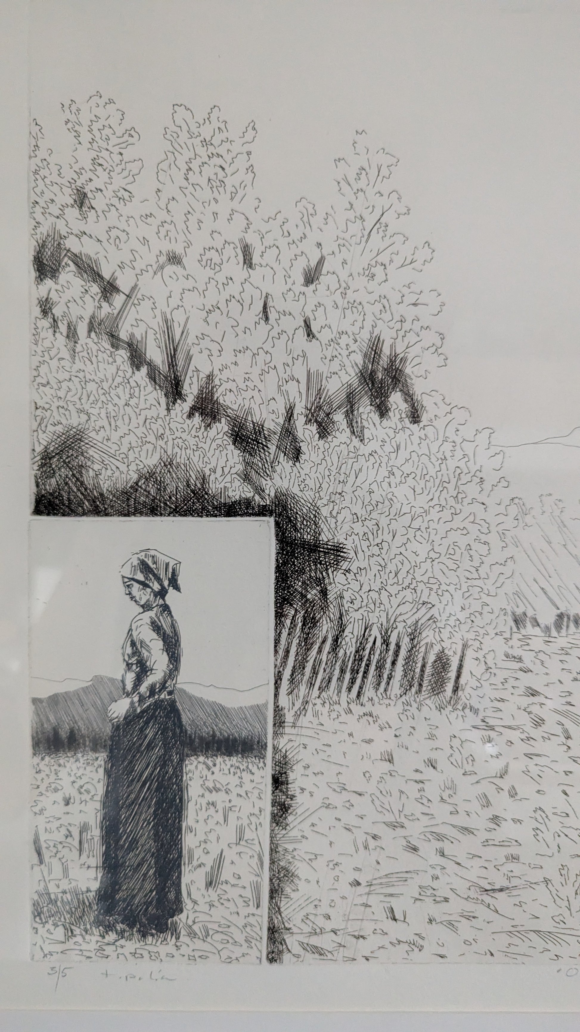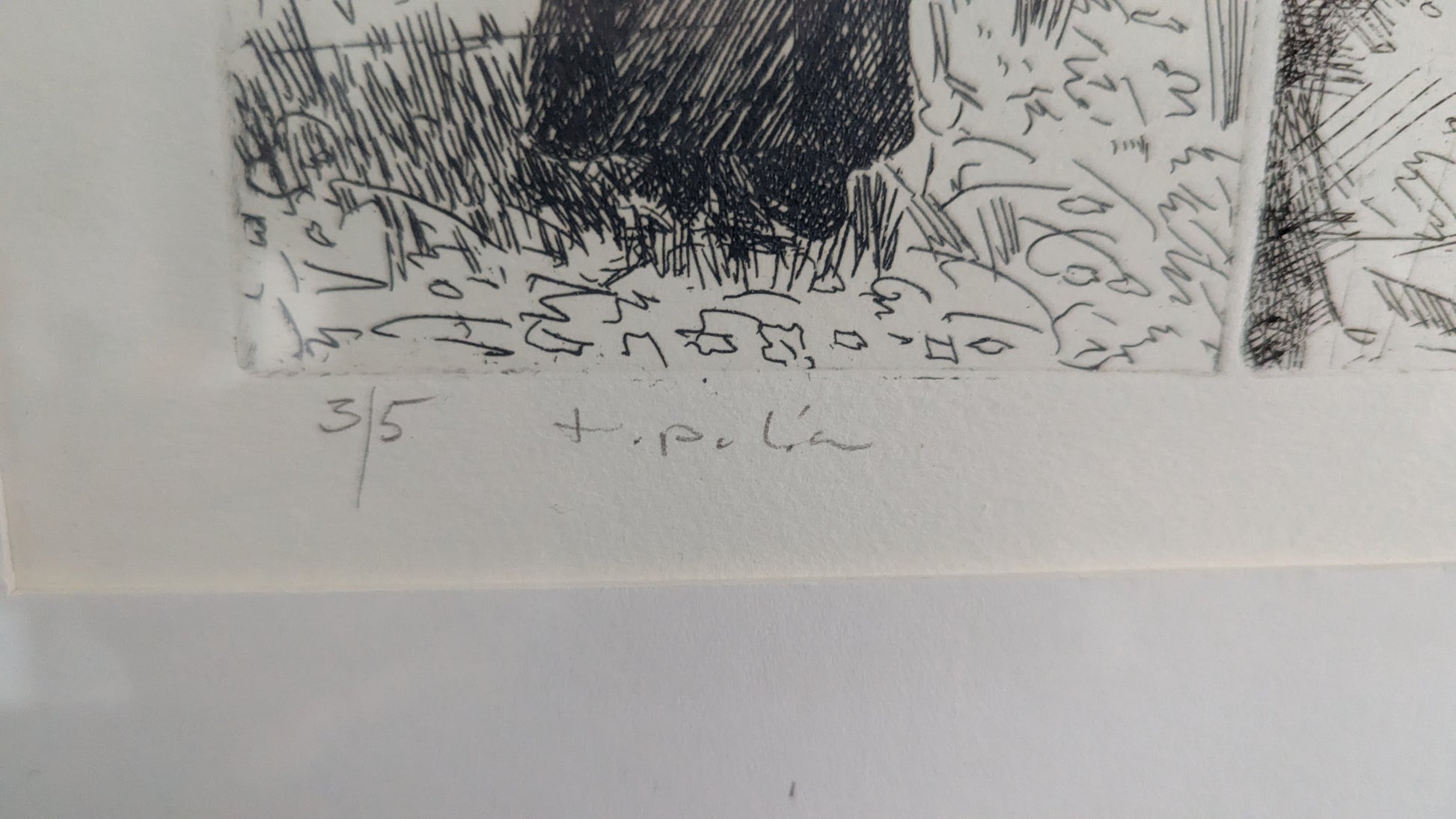 Teoksen alla vedosmerkintä Tpl'a eli kyseessä taiteilijan itsensä tekemä vedos. Lisäksi numerointi 3/5, taiteilijan signeeraus ja vuosiluku -92.