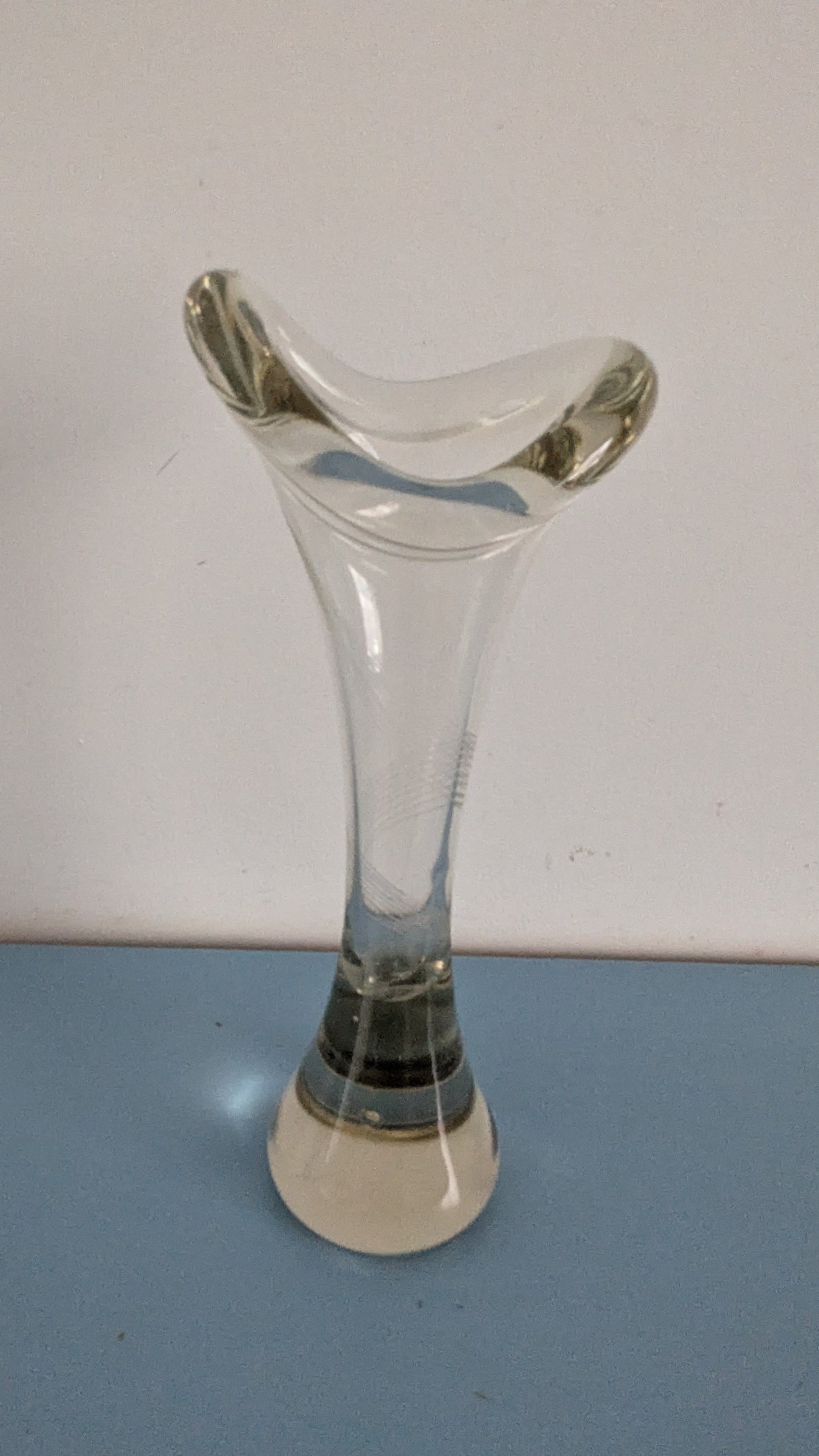Materiaali: Vapaasti puhallettu ja venytetty lasi, driivattu, pohja ja kuvio hiottu