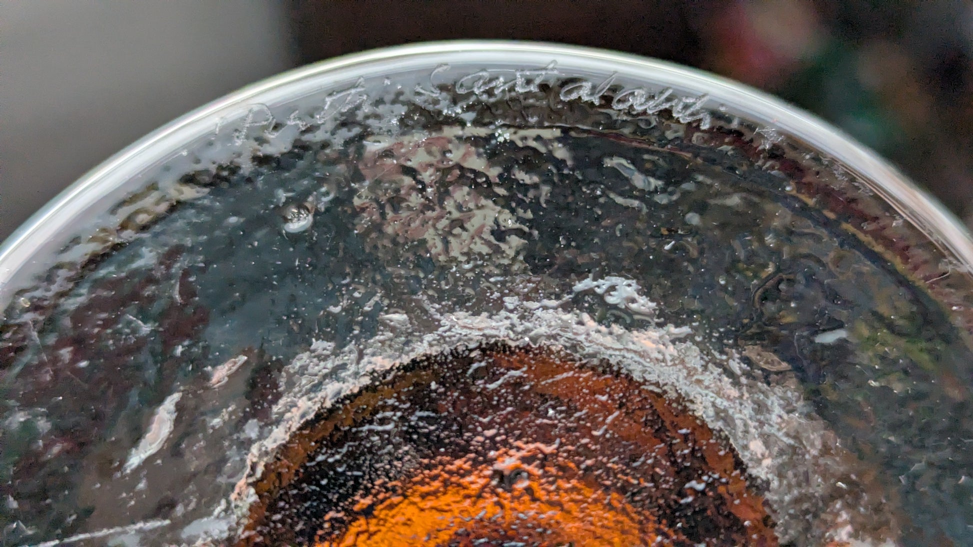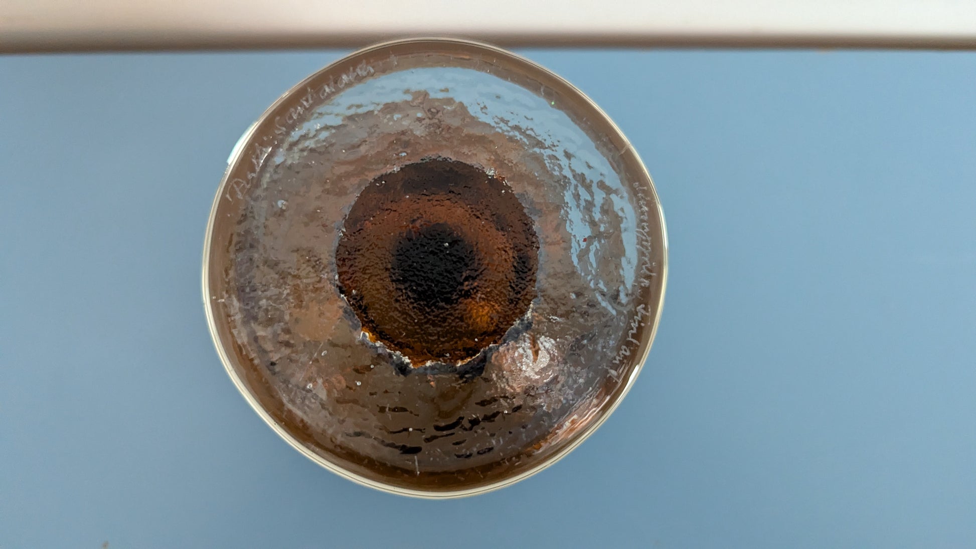 Ei iskemiä tai halkeamia. Pohjassa yksi siirtelystä tullut pieni naarmu. Muuten ei naarmuja.