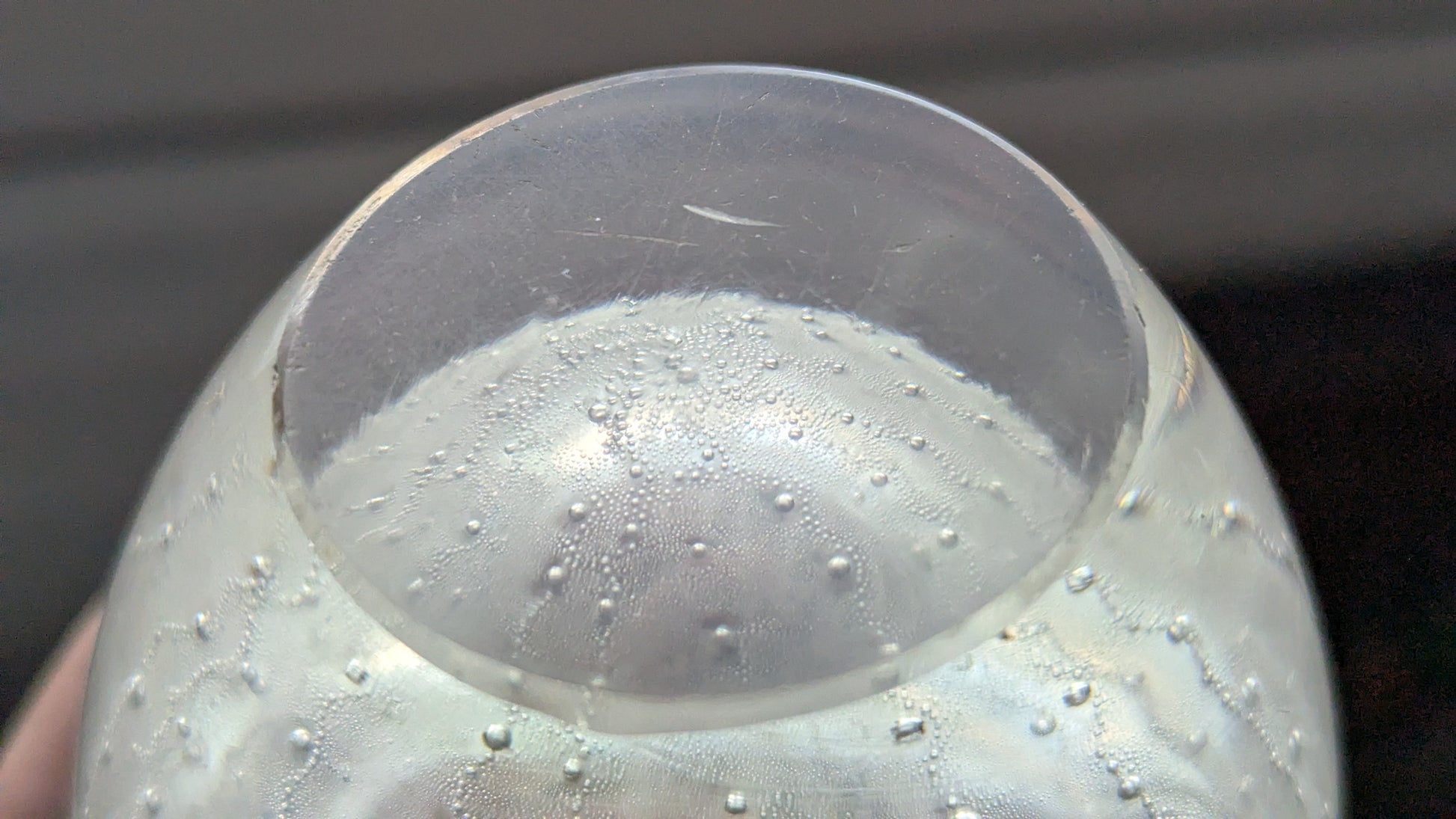 Ei iskemiä tai halkeamia. Pohjassa siirtelystä tullutta naarmua.