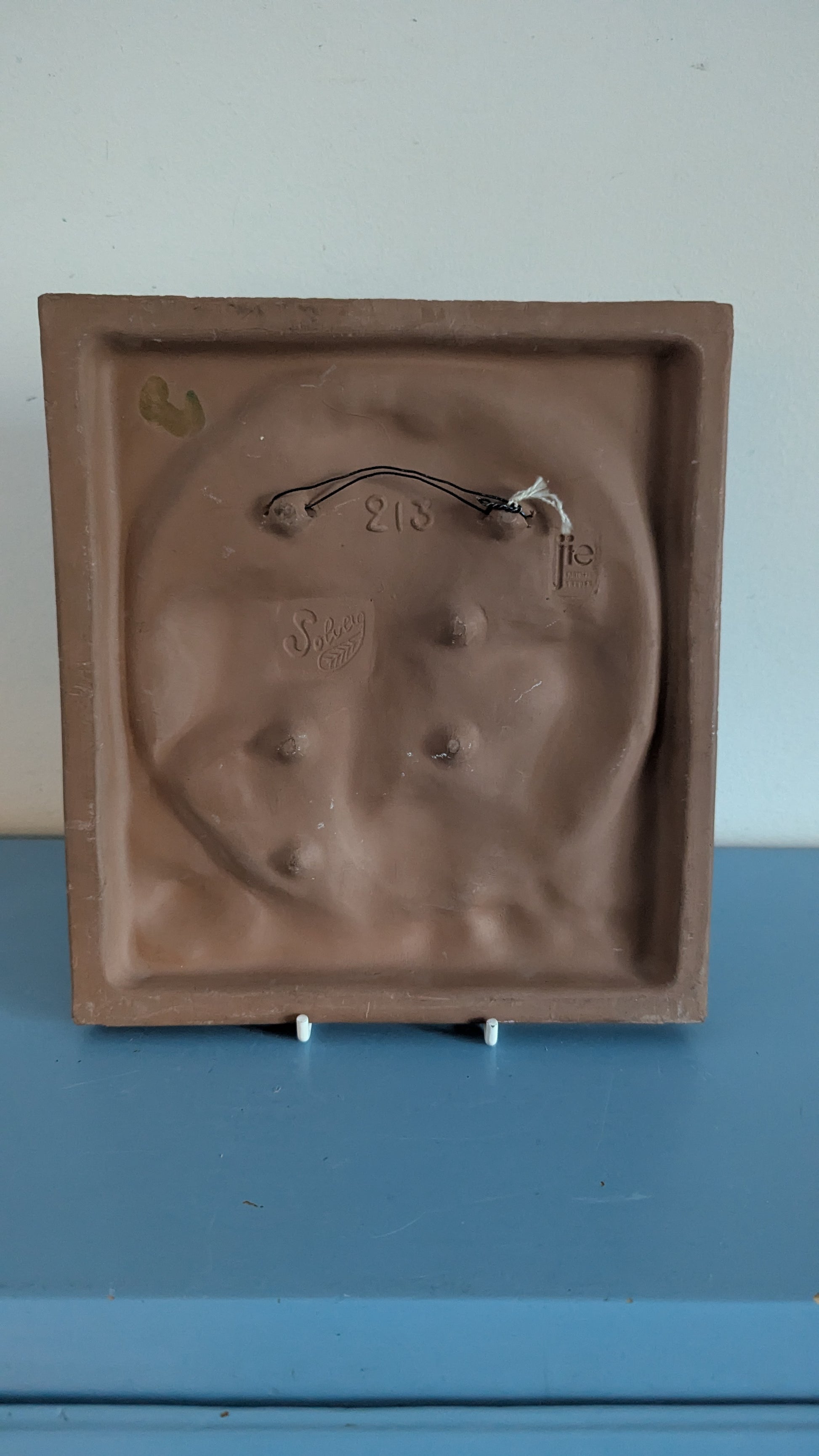 Takaosassa on syväleimattu Jien logo, mallinumero (213) ja Solveig Nyqvistin leima.