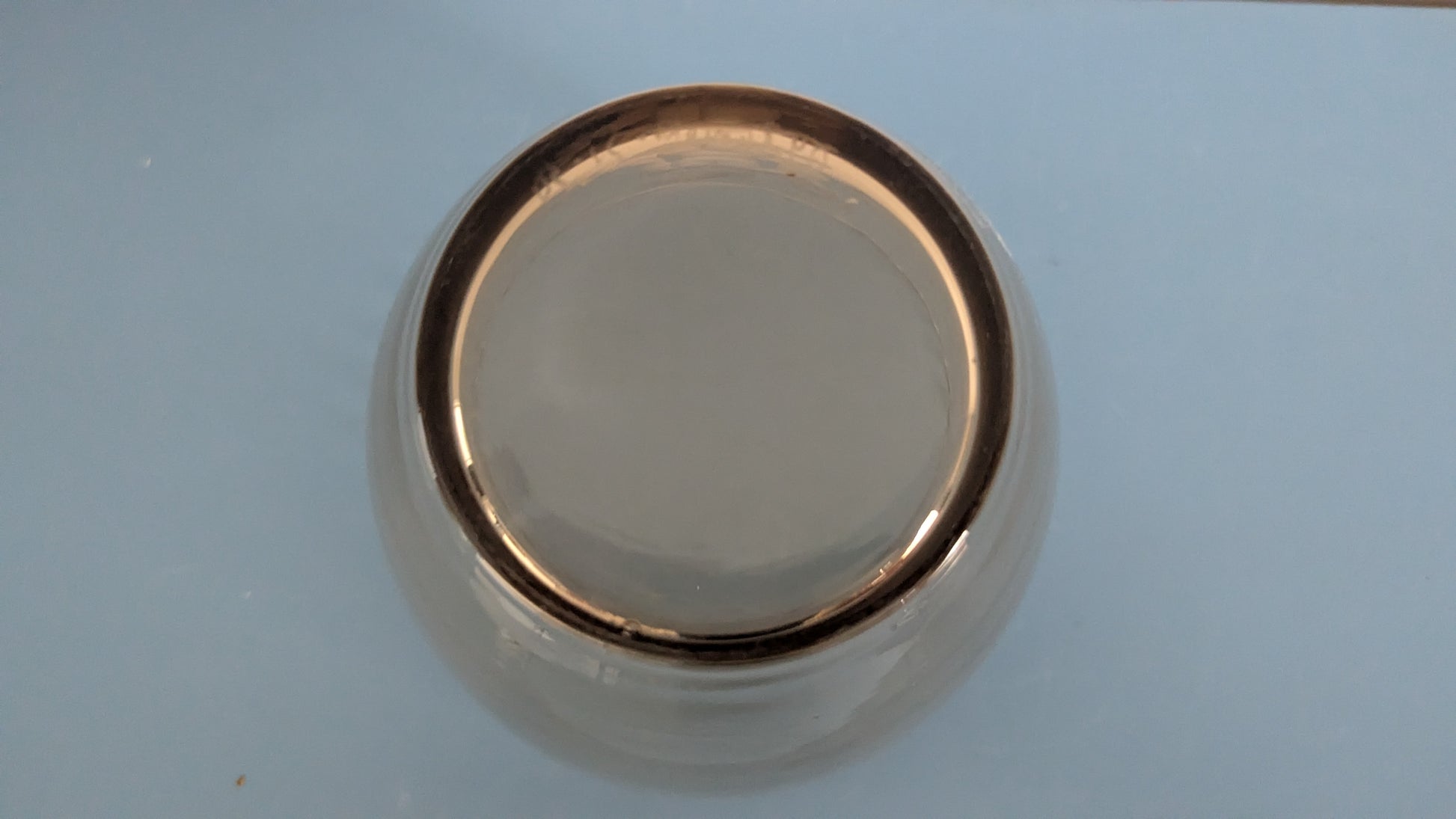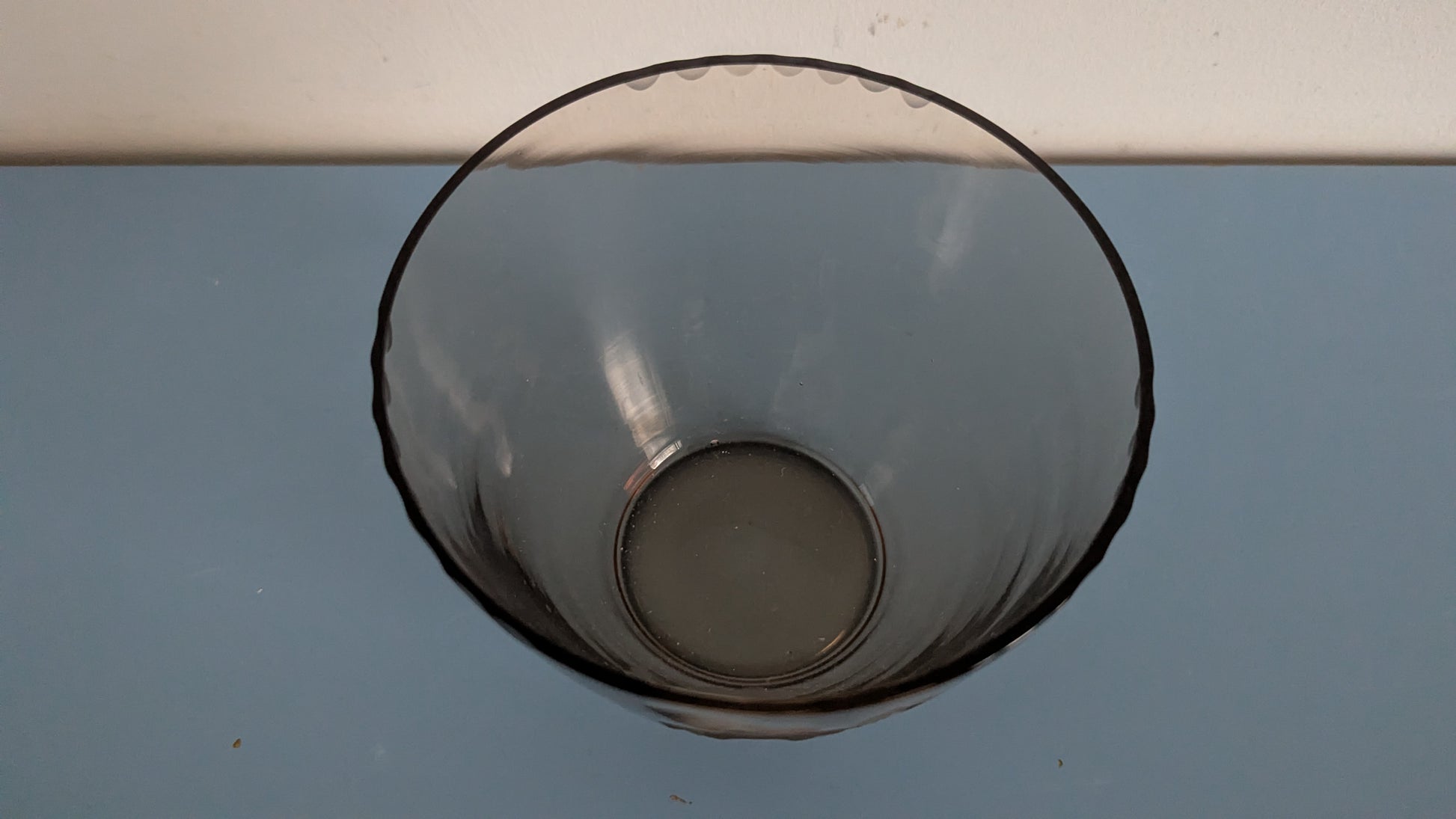 Ei iskemiä tai halkeamia. Minimaalista käyttökulumaa. Pohjareunan lasimassaan jäänyt viimeisessä kuvassa näkyvä ilmakupla.