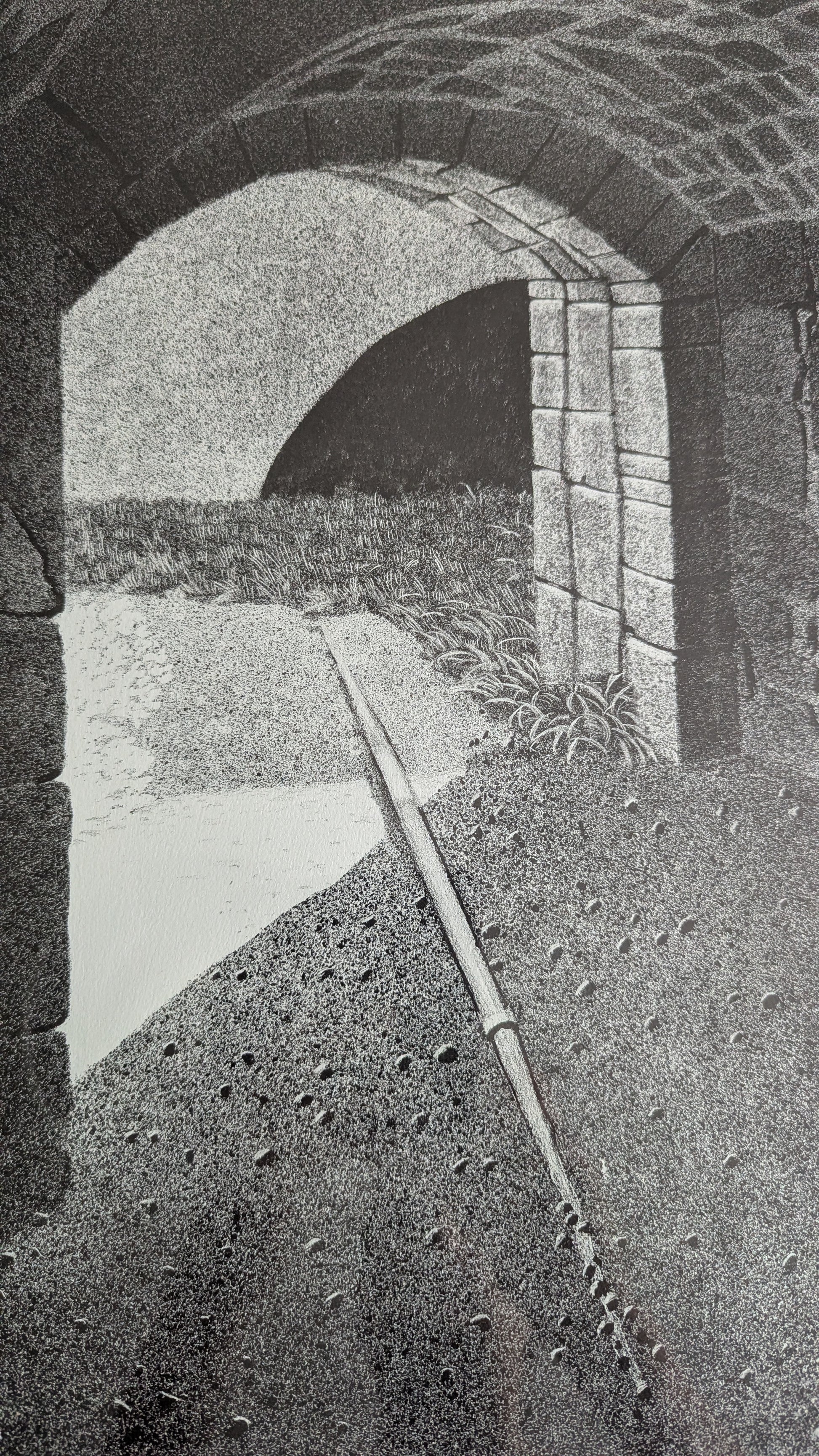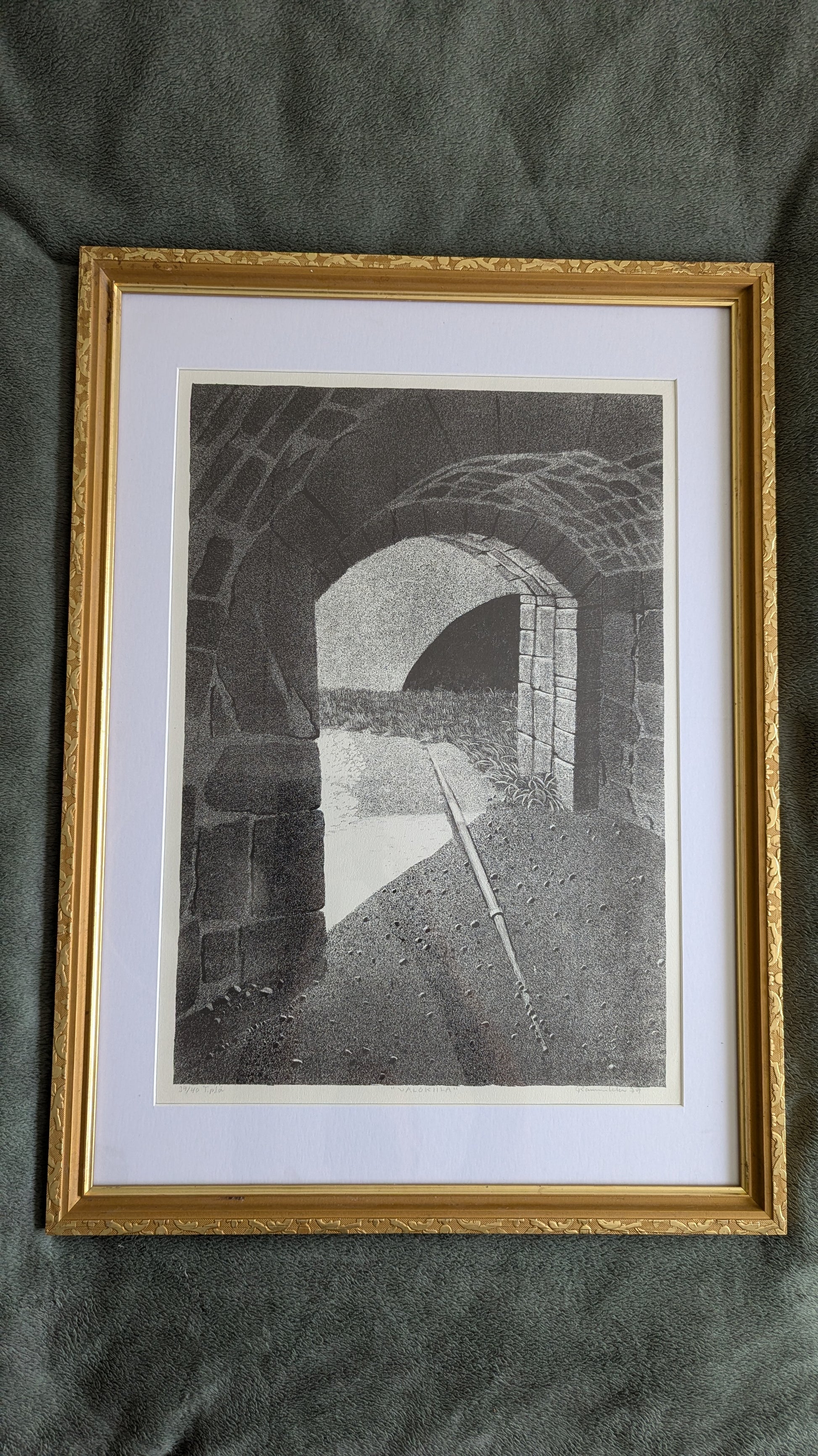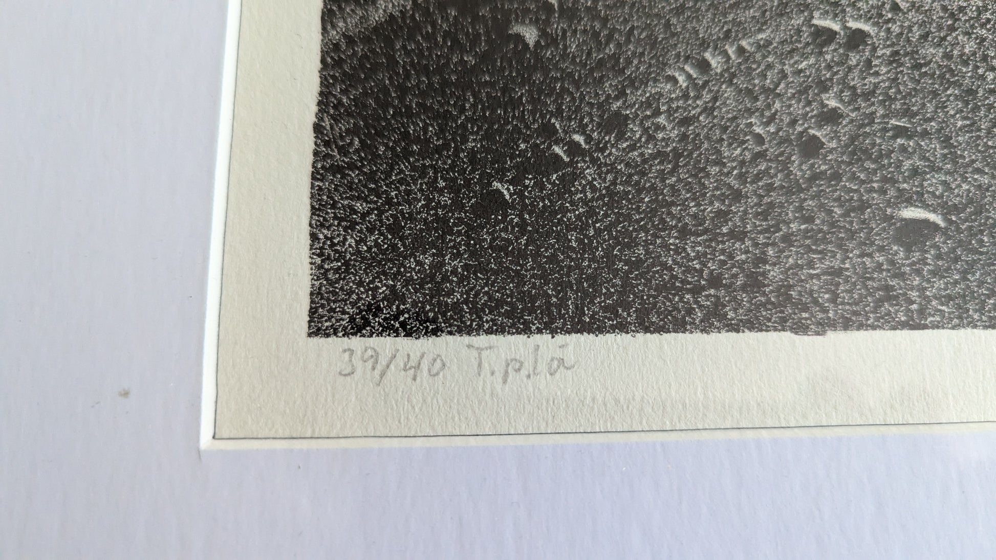 Teoksen alla vedosmerkintä Tpl'a eli kyseessä taiteilijan itsensä tekemä vedos. Lisäksi numerointi 39/40, teoksen nimi, taiteilijan signeeraus, ja vuosiluku -77.