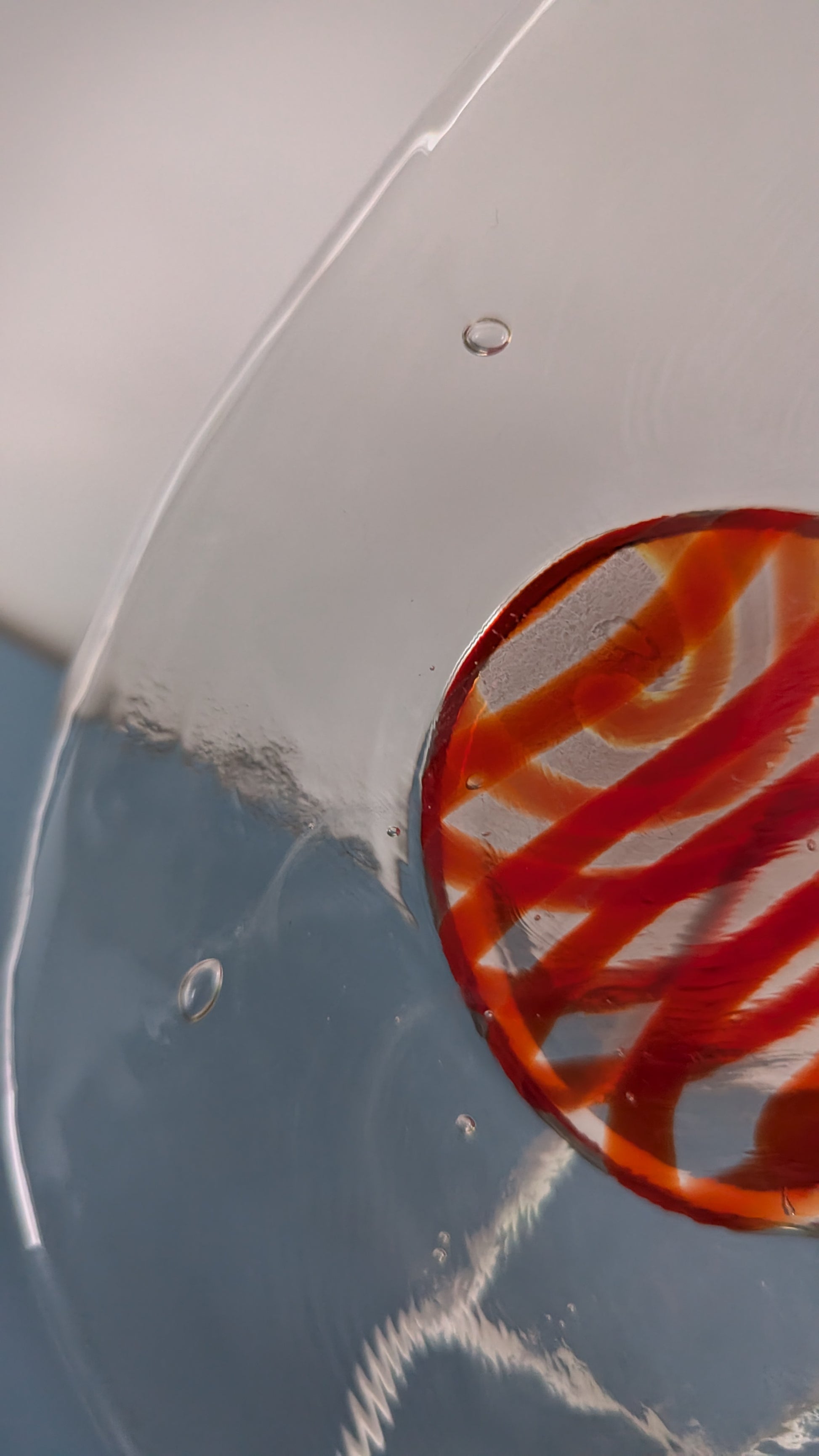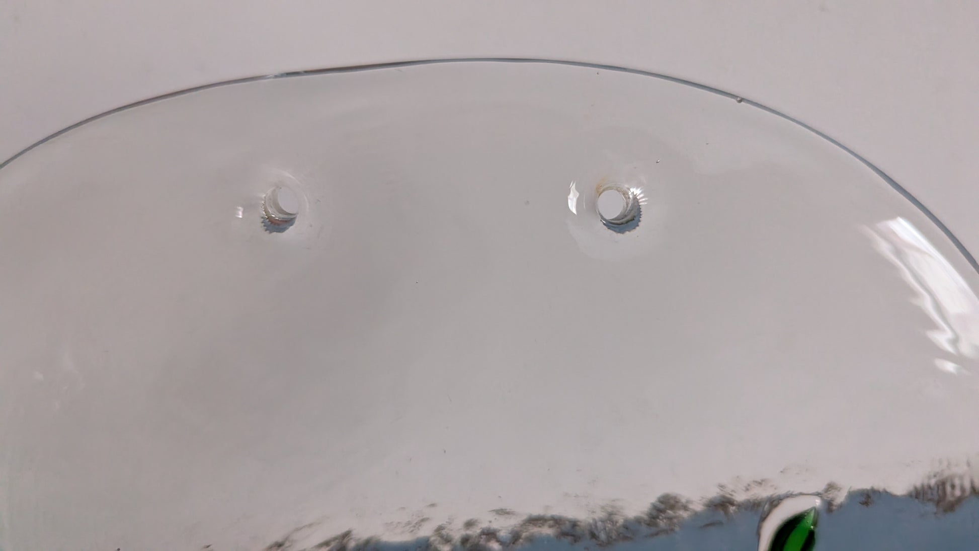 Ei iskemiä tai halkeamia. Keskellä pientä naarmua mitä en saanut kuvaan. Oikean reunan lasimassaan jäänyt kaksi isompaa ilmakuplaa, joista isompi 7mm kokoinen. Näkyy viimeisessä kuvassa.