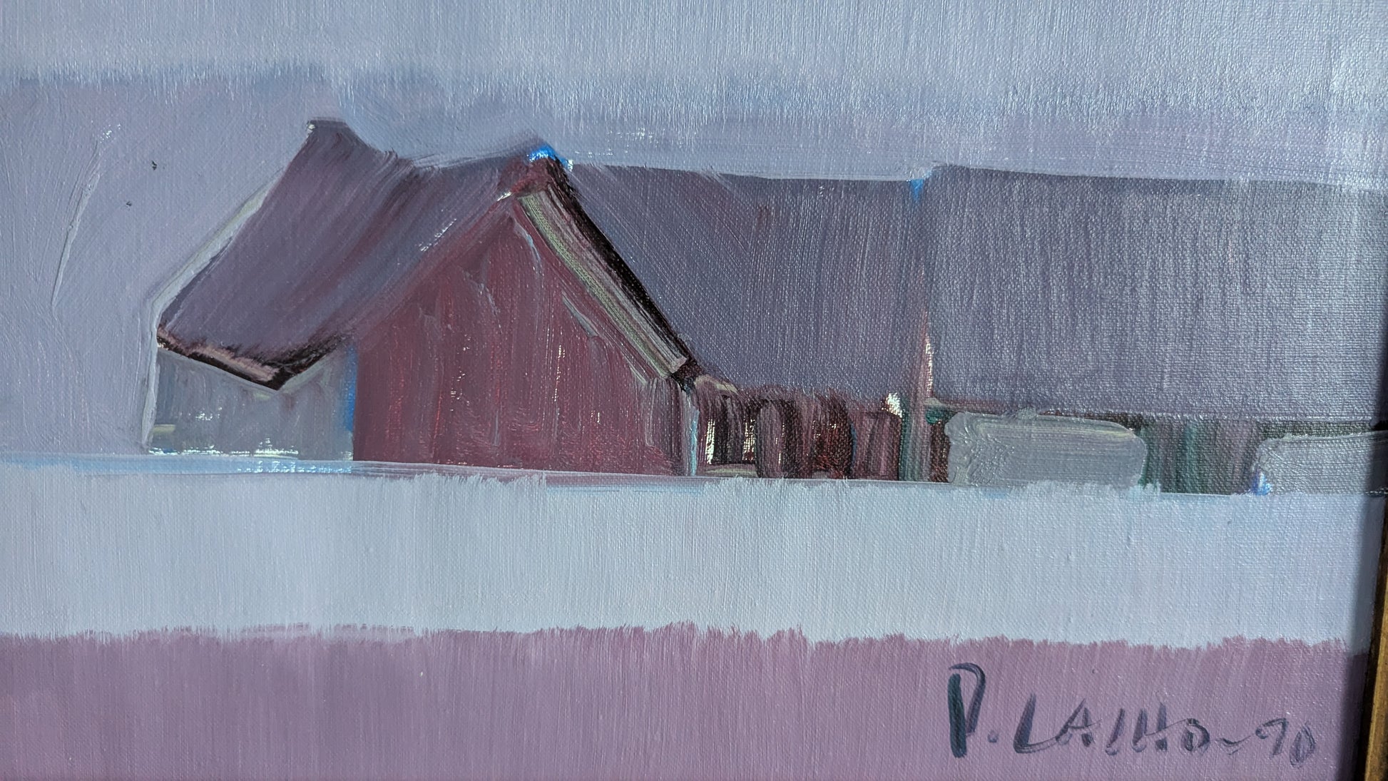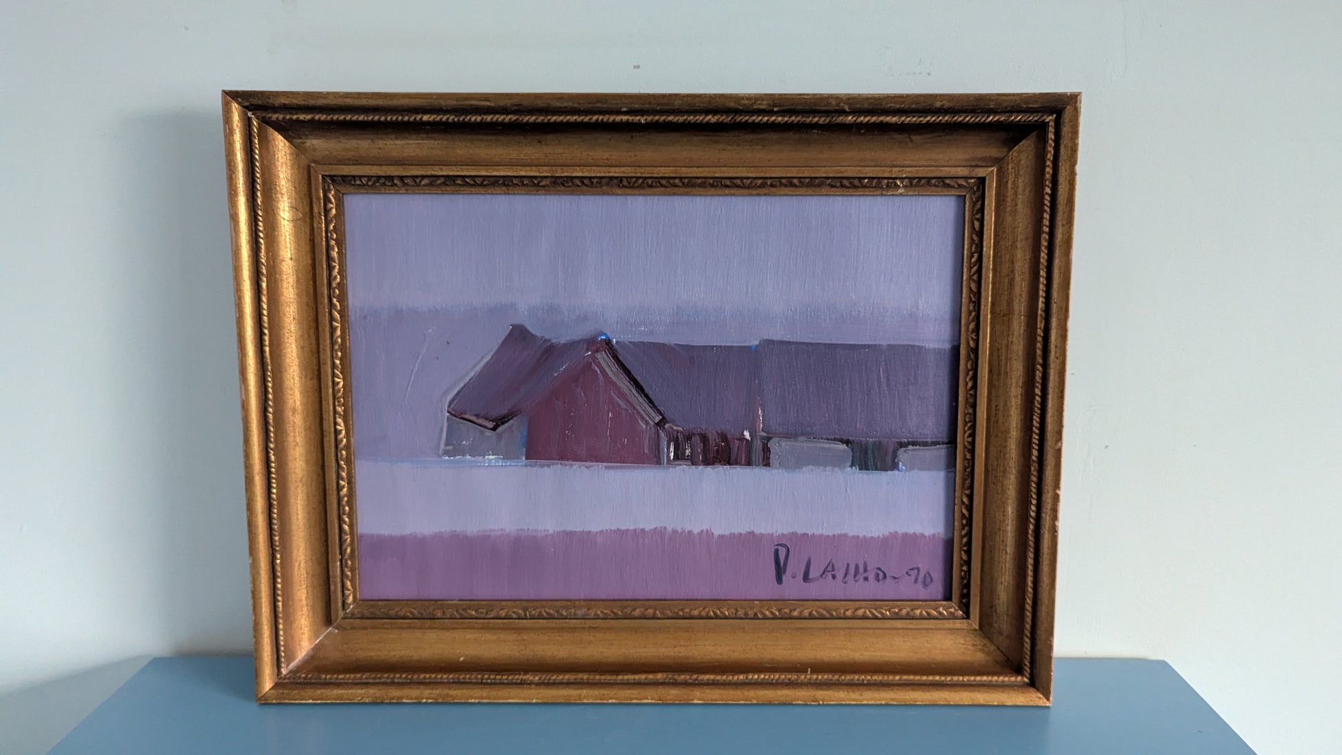 Pekka Laihon signeeraama öljyvärityö kankaalle vuodelta 1990.