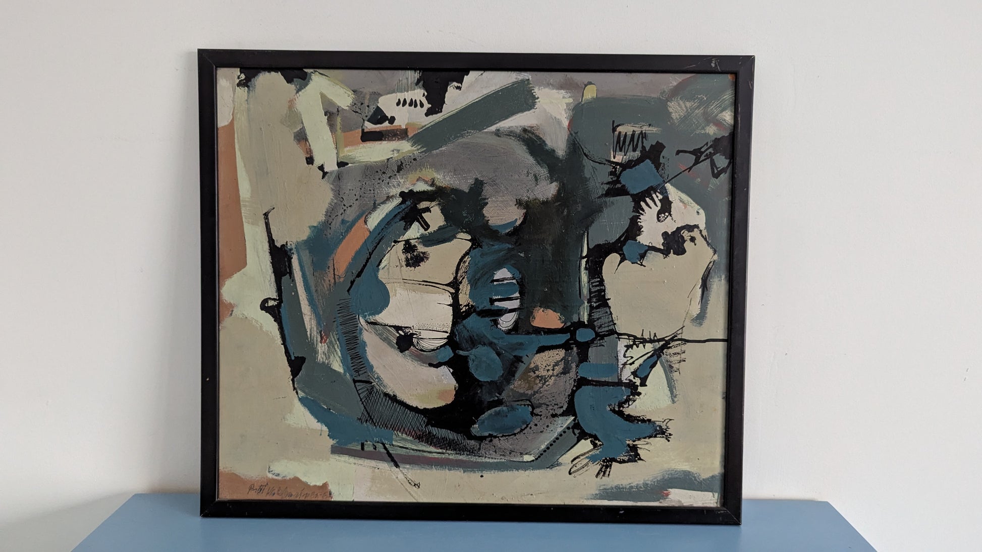 Pertti Kolehmaisen signeeraama sekatekniikkatyö (öljyväri / tussi) vuodelta 1964.