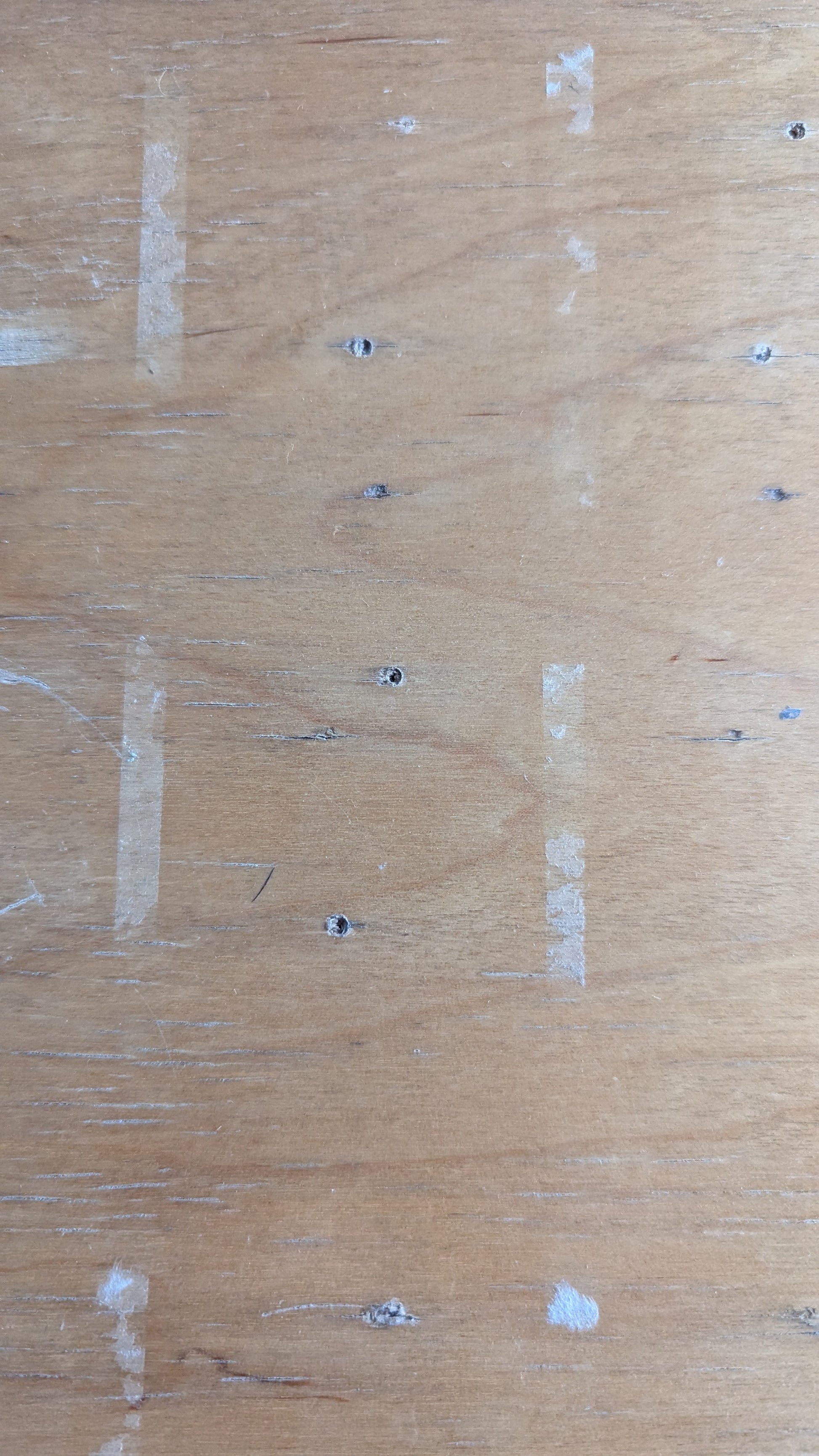 Sisältä hyvässä kunnossa mutta ovessa teipistä jäänyttä liimapintaa sekä pieniä reikiä. Näyttää siltä niin kuin ovessa olisi ollut useita pieniä nauloja. Reiät eivät tule läpi eli oven sisäpuolella ei ole reikiä.