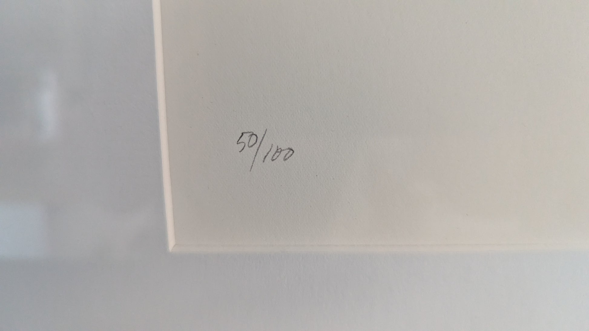 Teoksen alla numerointi 50/100, taiteilijan signeeraus ja vuosiluku -93