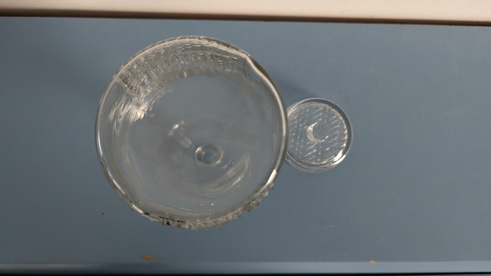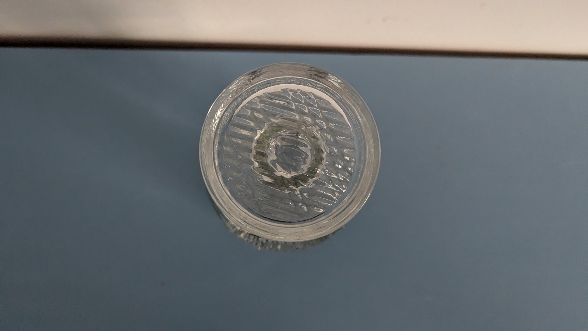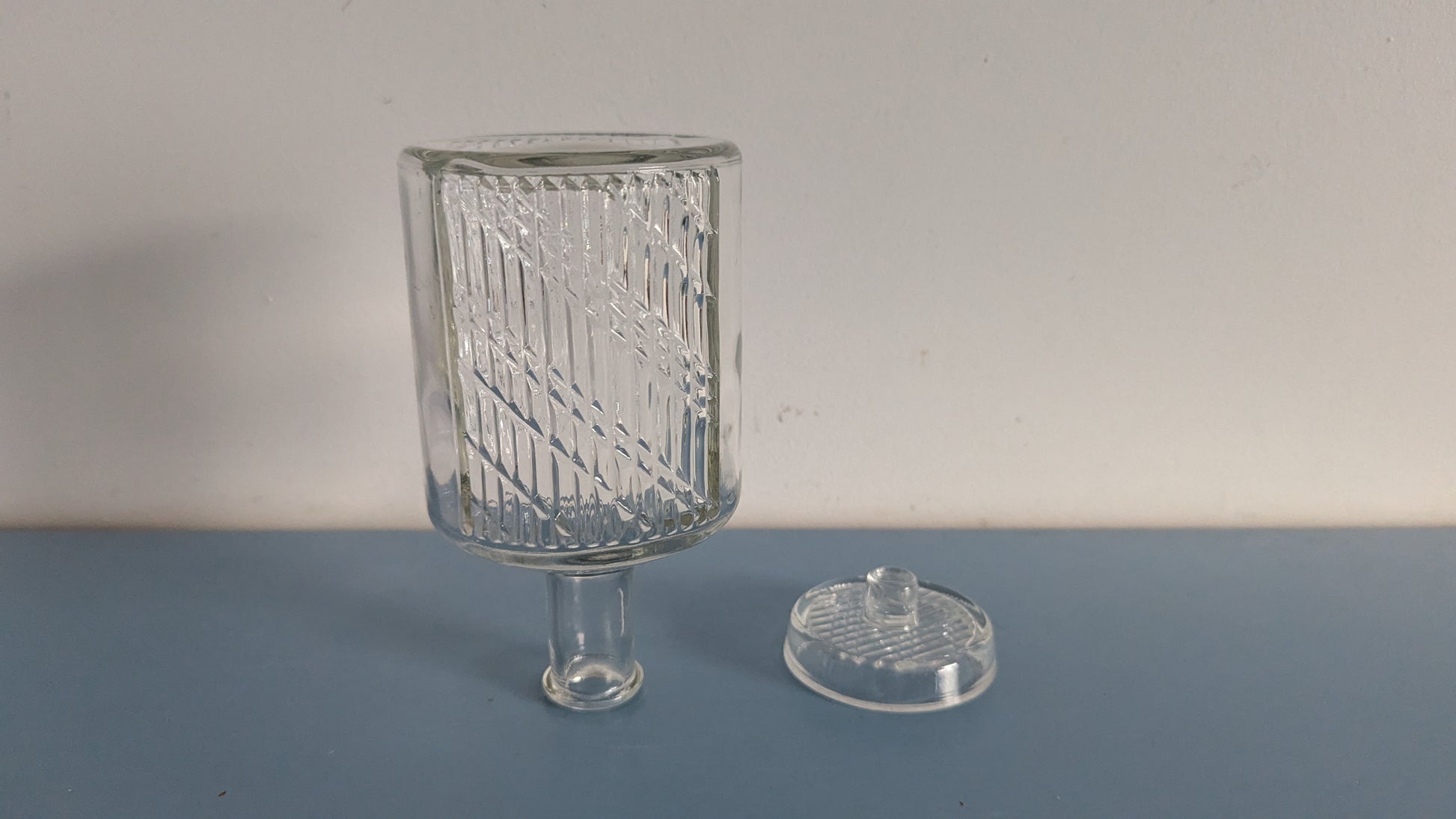 Materiaali: Puoliautomaatilla muottiin puhallettu lasi