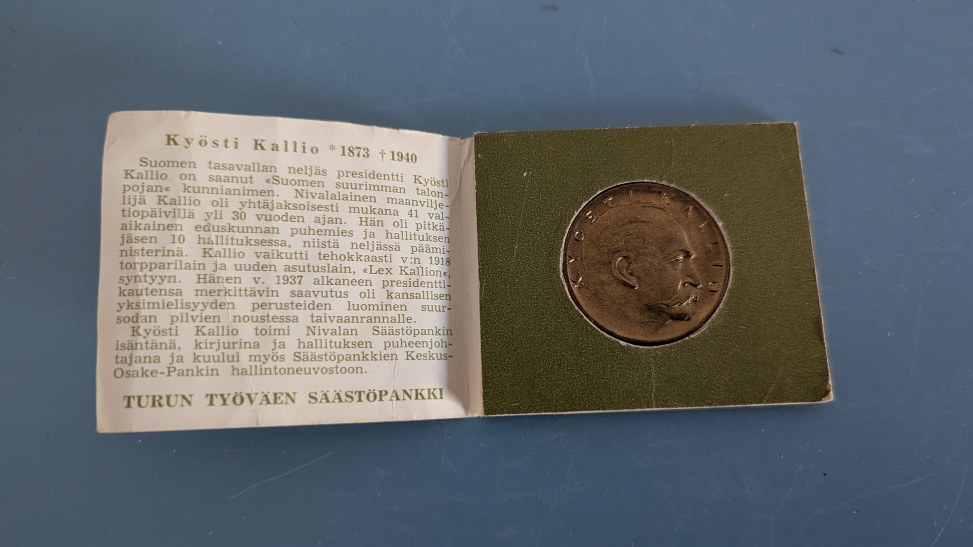 Säästöpankkiviikko 1963 - Kyösti Kallio Mitali (Turun Työväen Säästöpankki)
