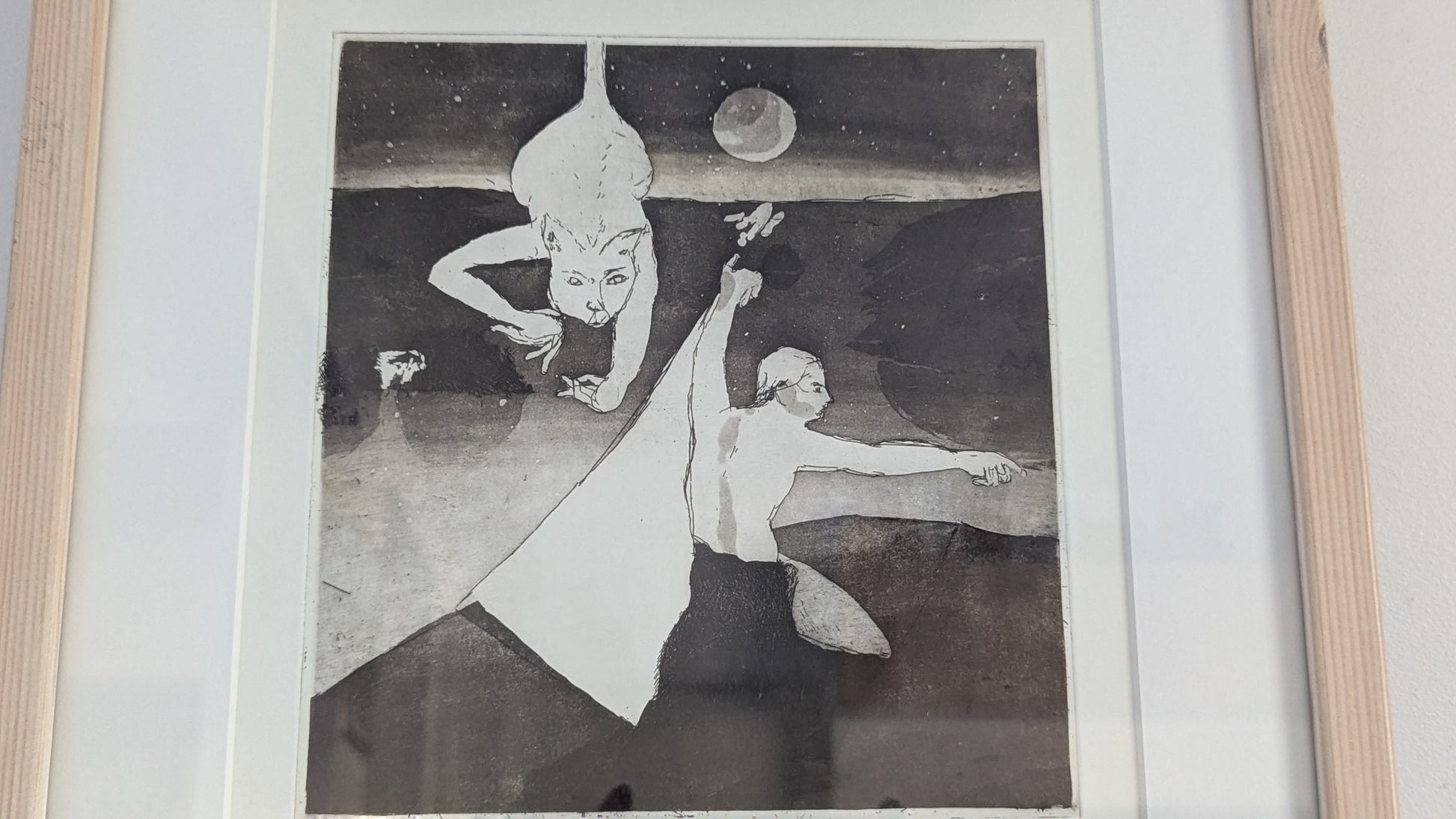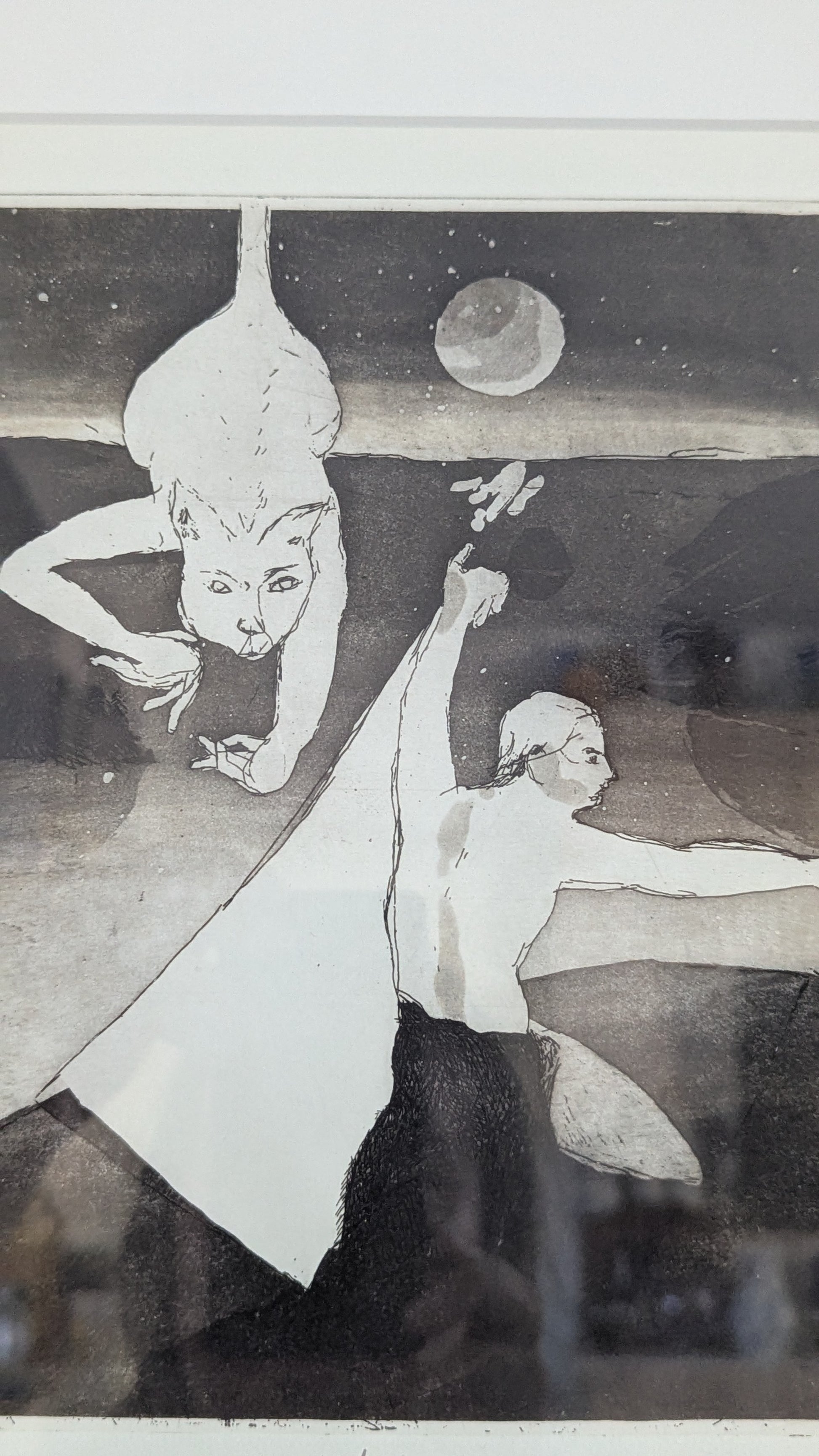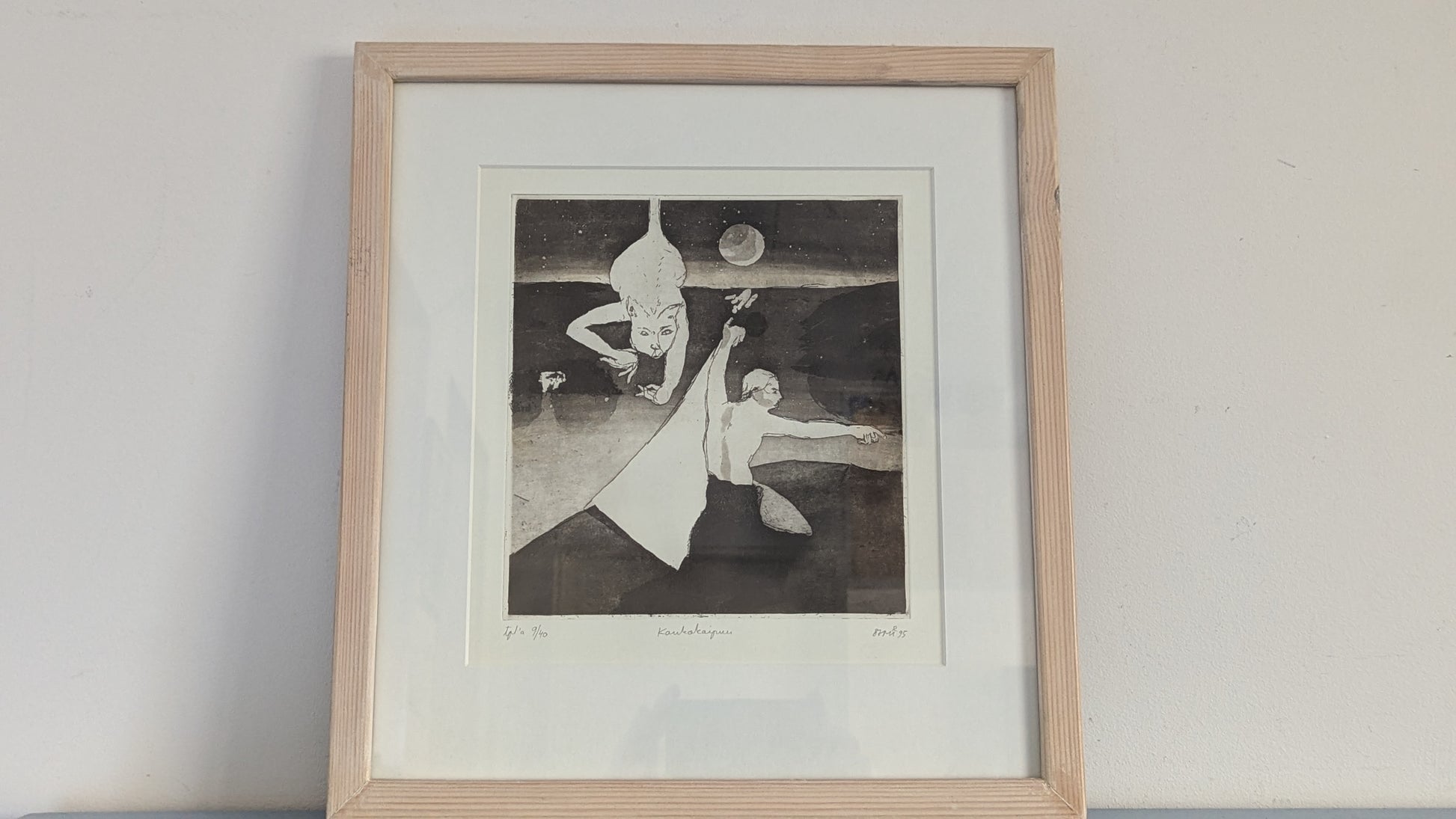 Sami Rinteen signeeraama, Kaukokaipuu niminen, etsaus vuodelta 1995.