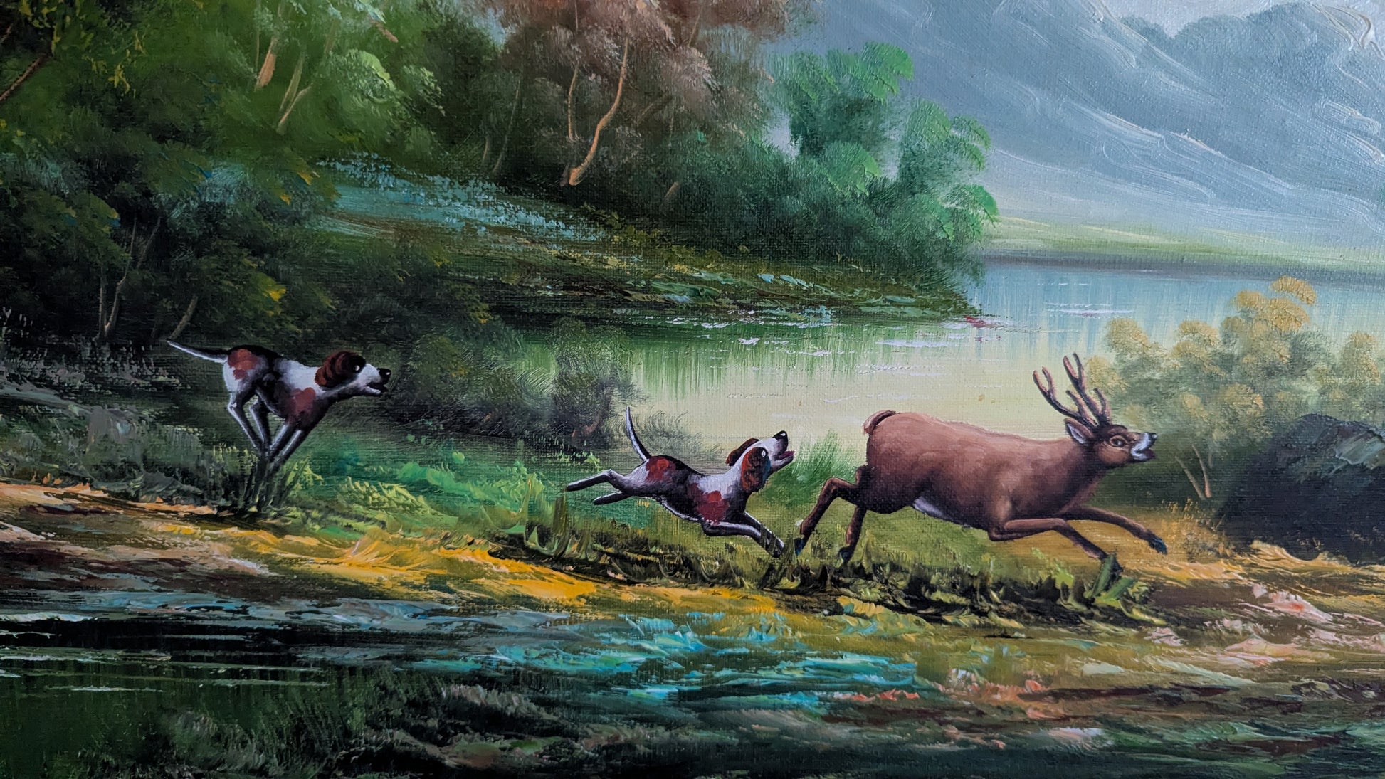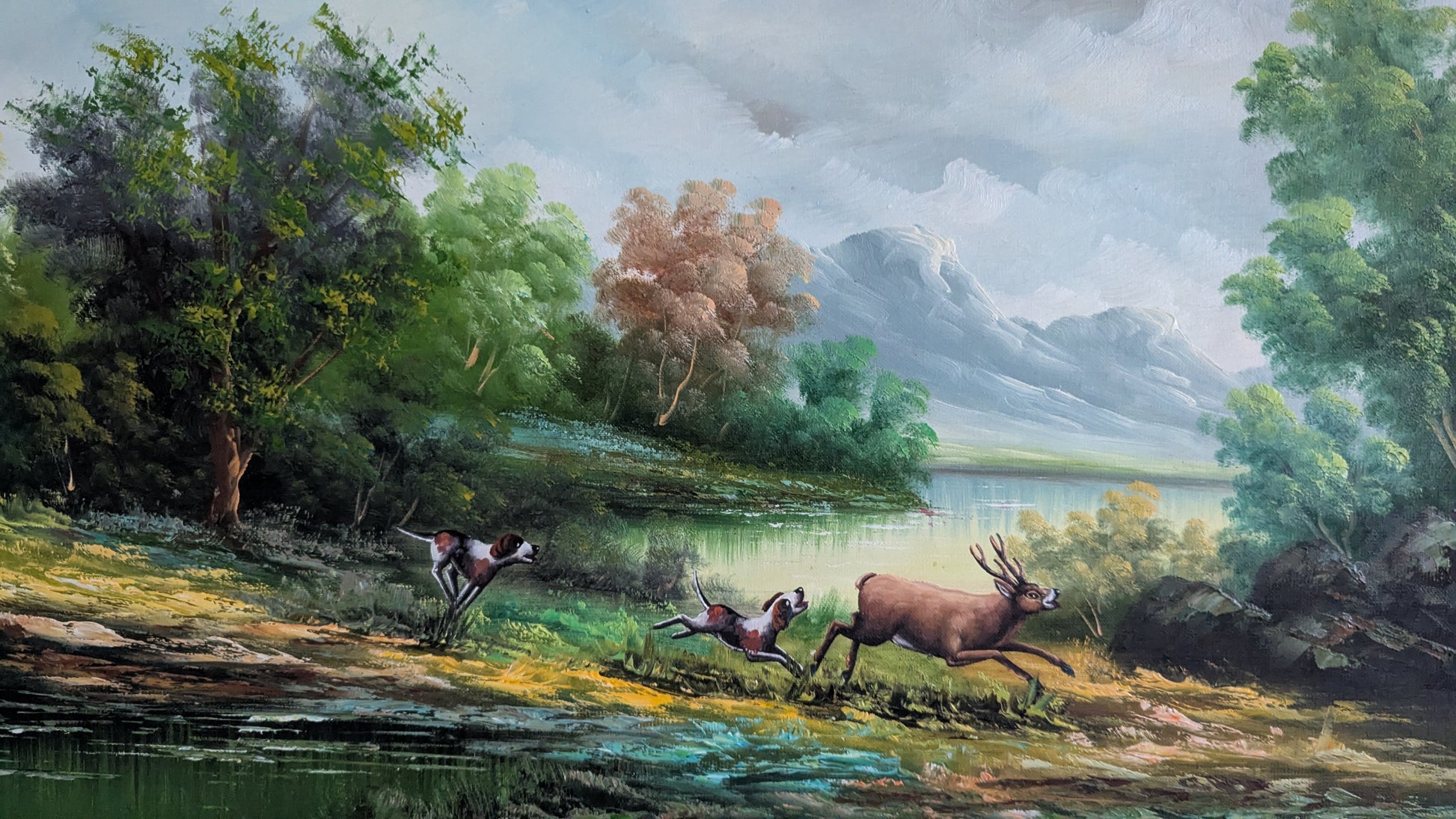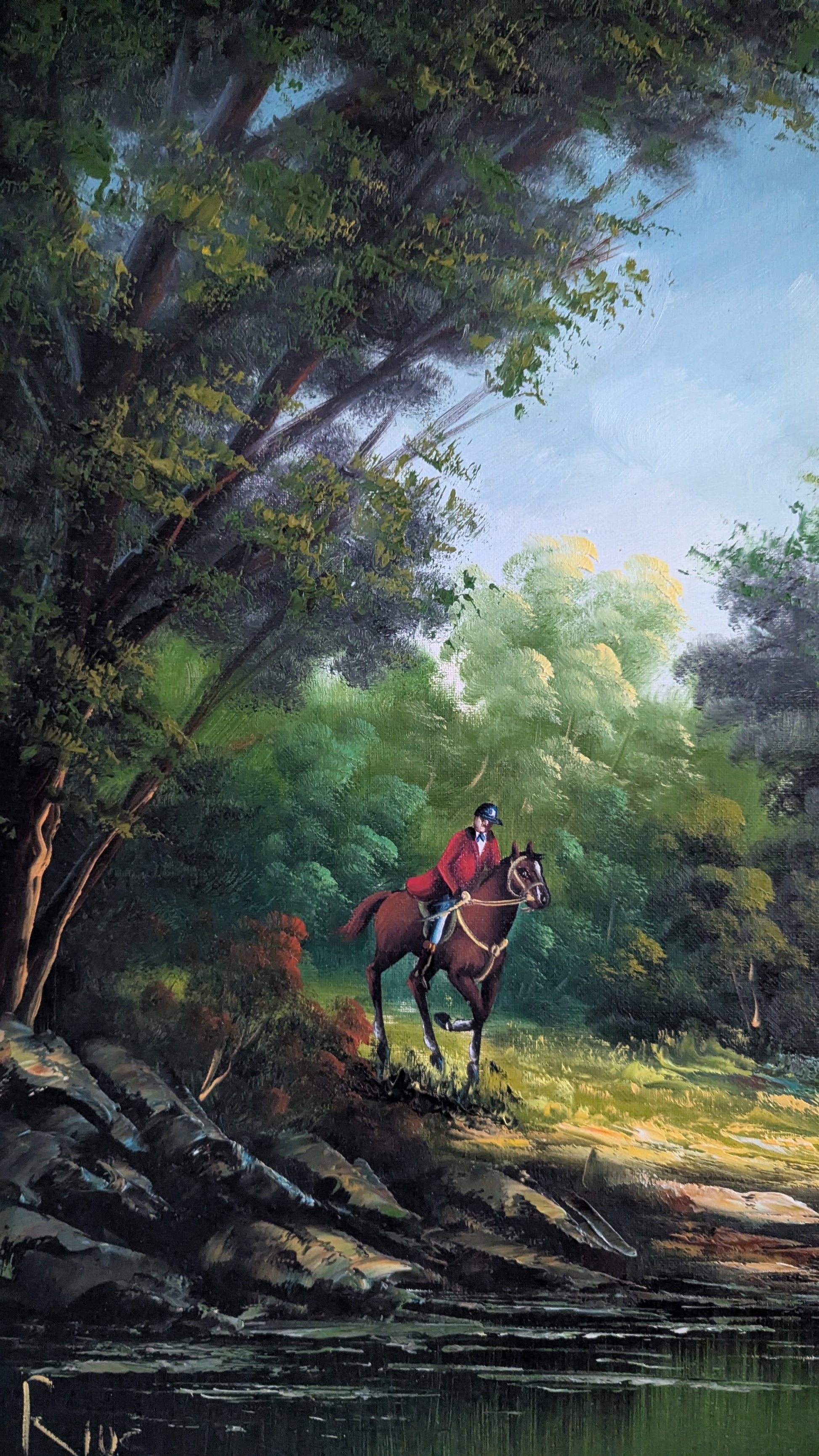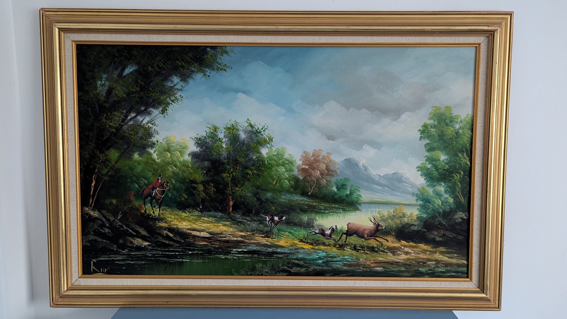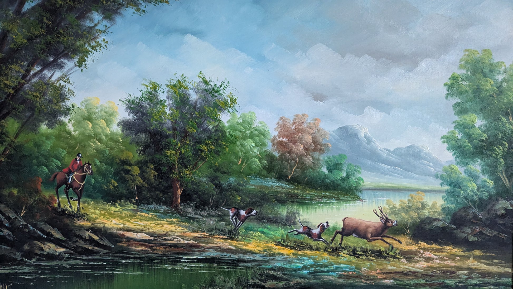 Signeerattu Metsästysaiheinen Öljyvärimaalaus