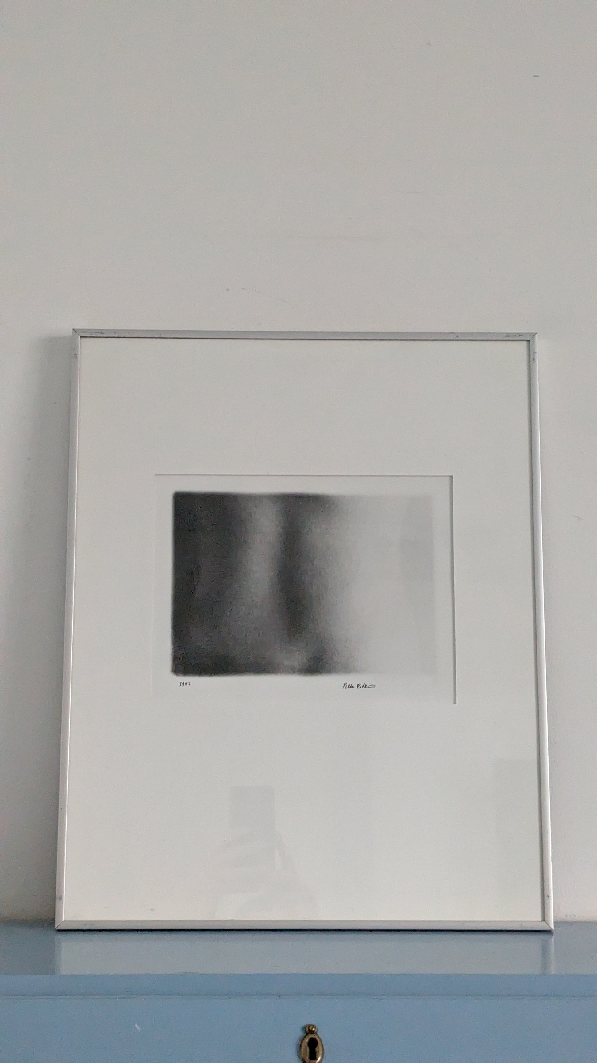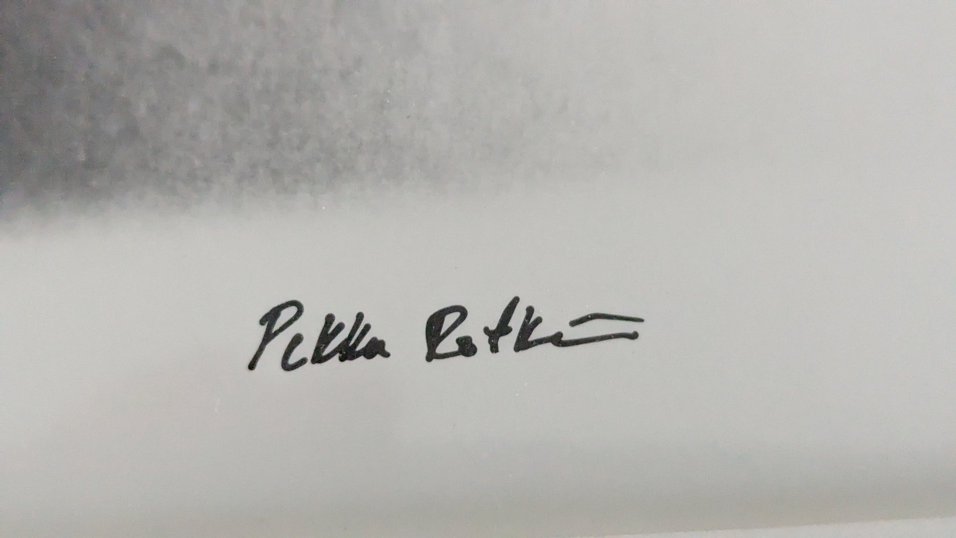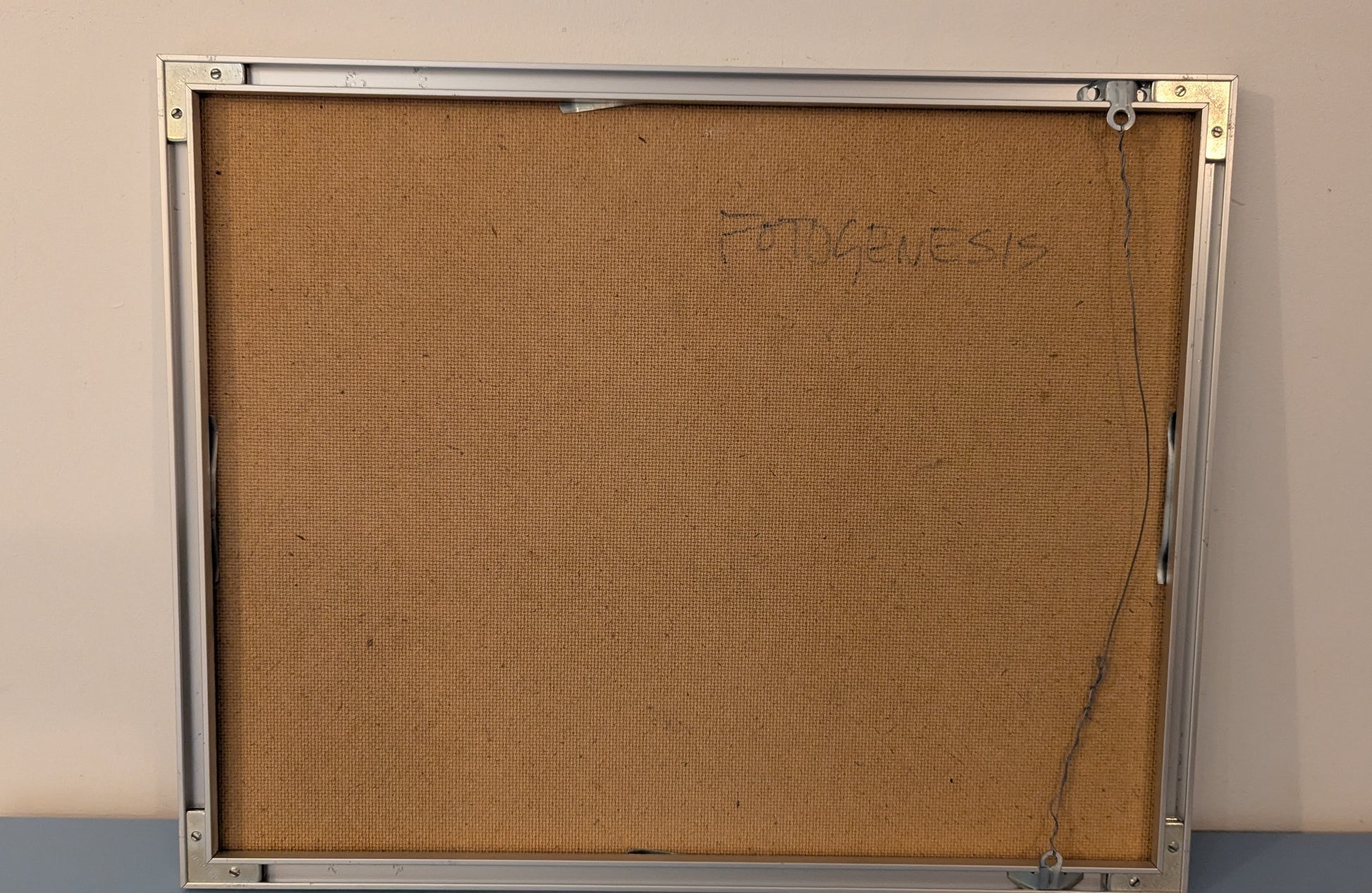 Signeerattu taidevalokuva / valokuva vuodelta 1987. Signeeraajan etunimi on Pekka mutta sukunimestä ei saa selvää. Teoksen takana teksti Fotogenesis