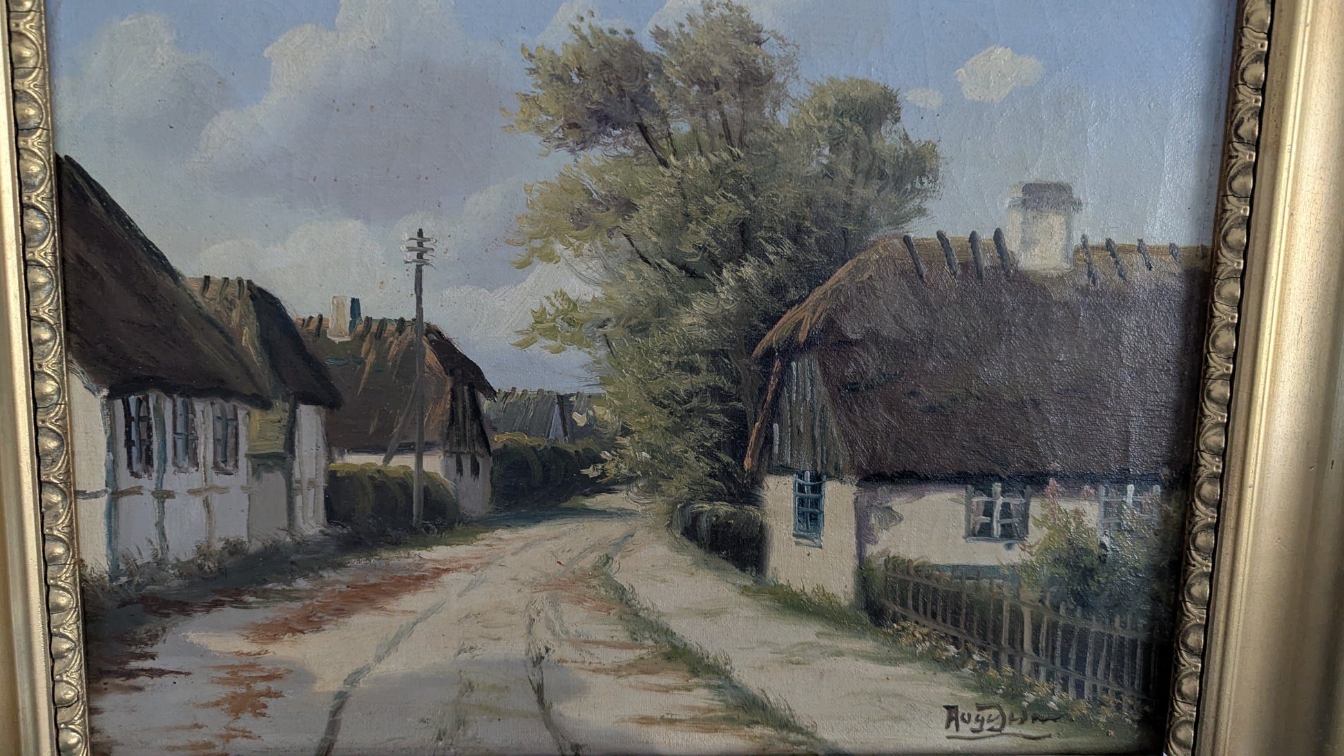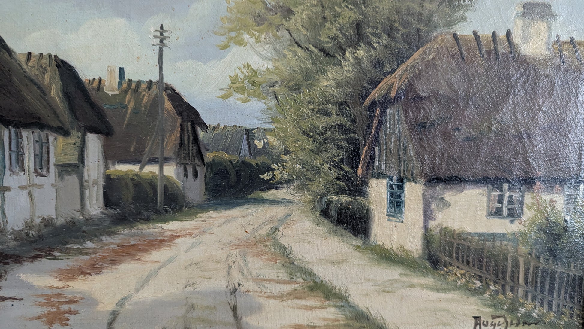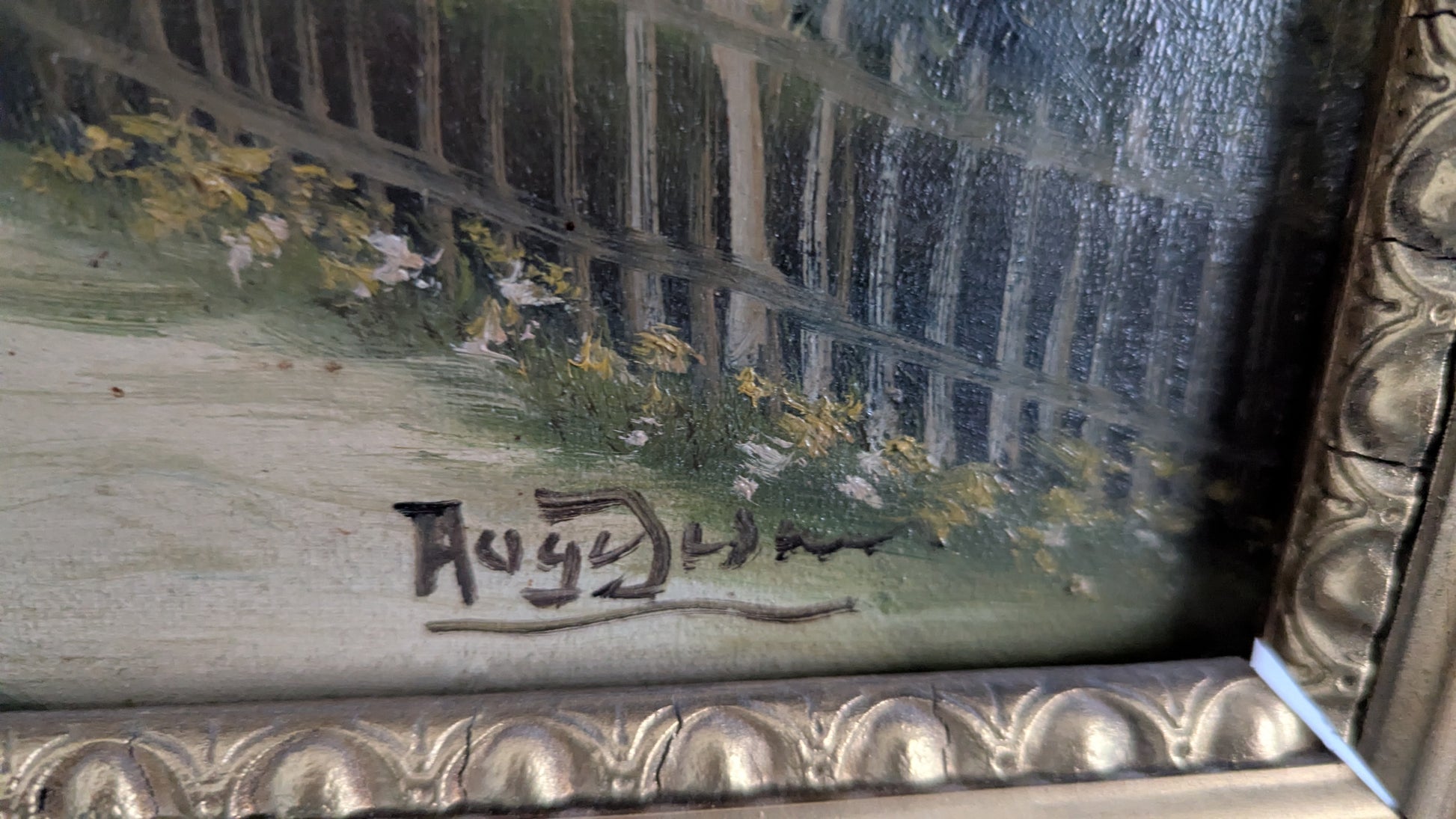 Signeerattu öljyvärityö kankaalle. Signeeraus epäselvä.