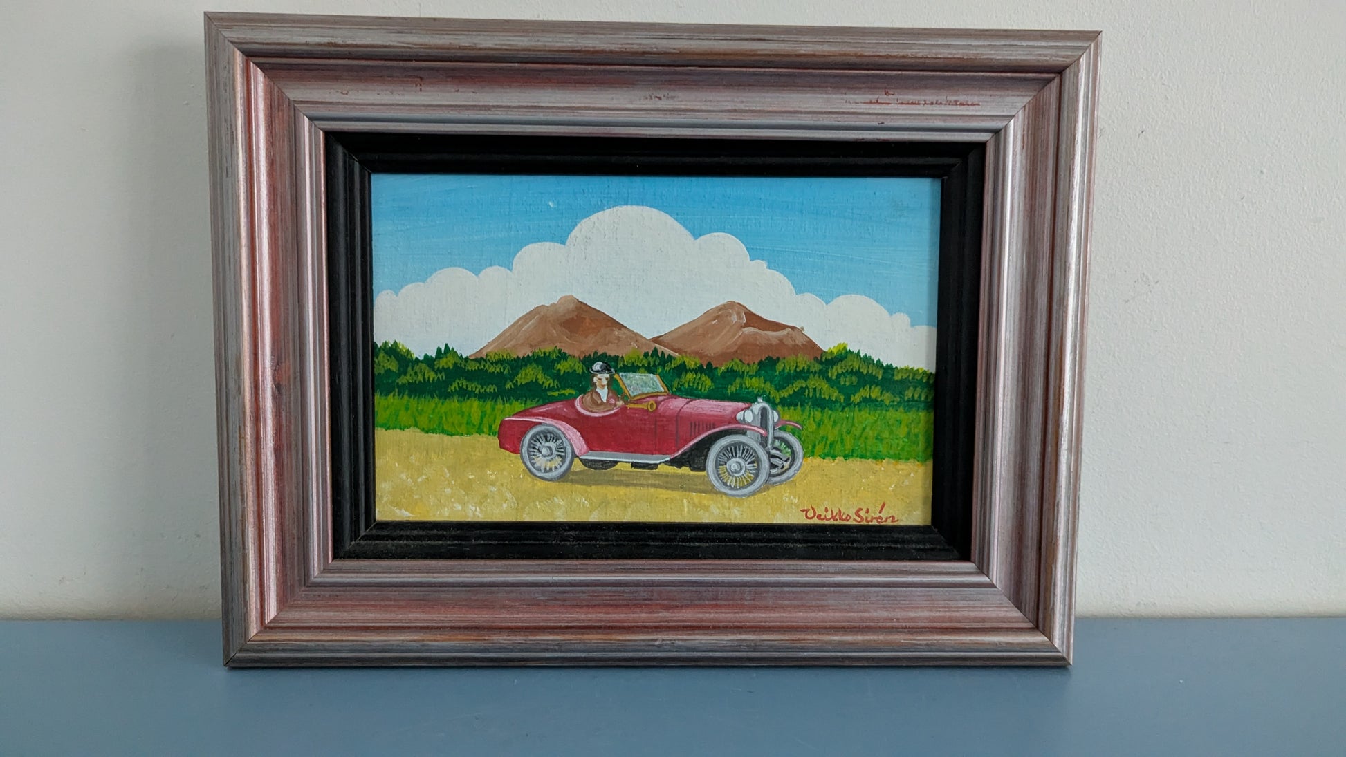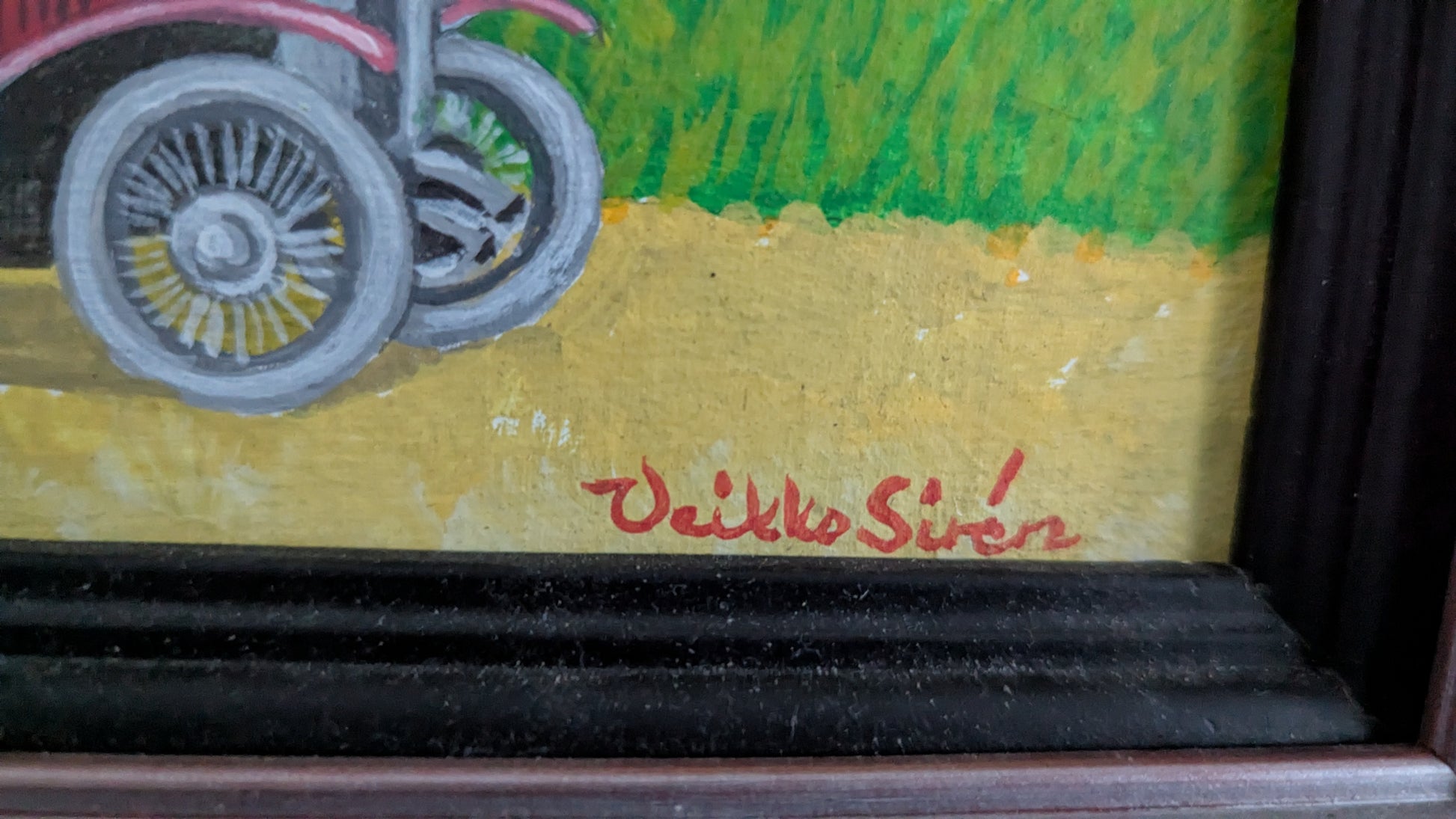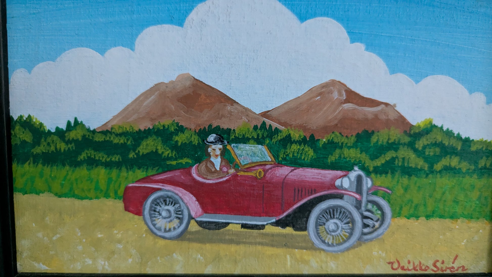 Veikko Sirenin signeeraama Salmson GP 1926 niminen öljyvärityö levylle.